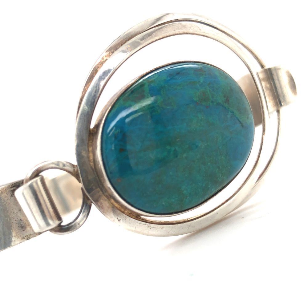 Native American sterling silver Azurite Crystal Stone Cuff size 6 3/4 " L 1 5/8" x W 1 1/8 "