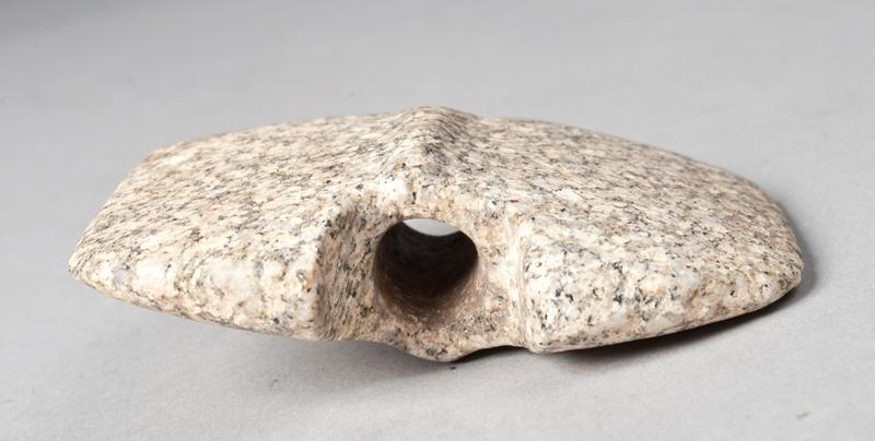 Peach and gray marbled stone, butterfly shape, measures 3.75" W x 2.5" H. Purchased from a museum collection in Kentucky 25 years ago.