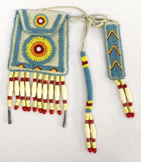 Native American Beaded Bag, 4'' X 4'' without fringe