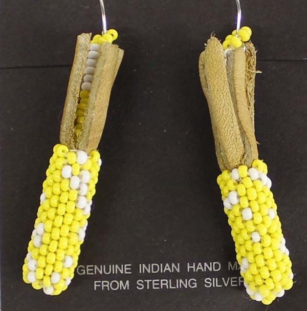 Native American Beaded Ears of Corn Earrings, measure .5'' x 1.75'', leather husks, Sweet!