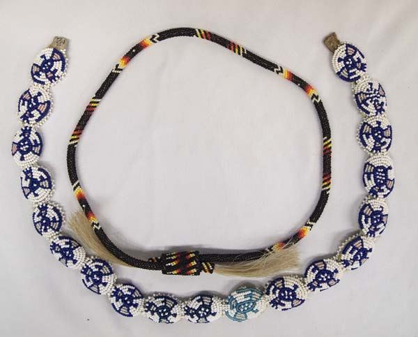 Native American Beaded Hat Bands, longest measures 25''L, one is horse hair and beadwork