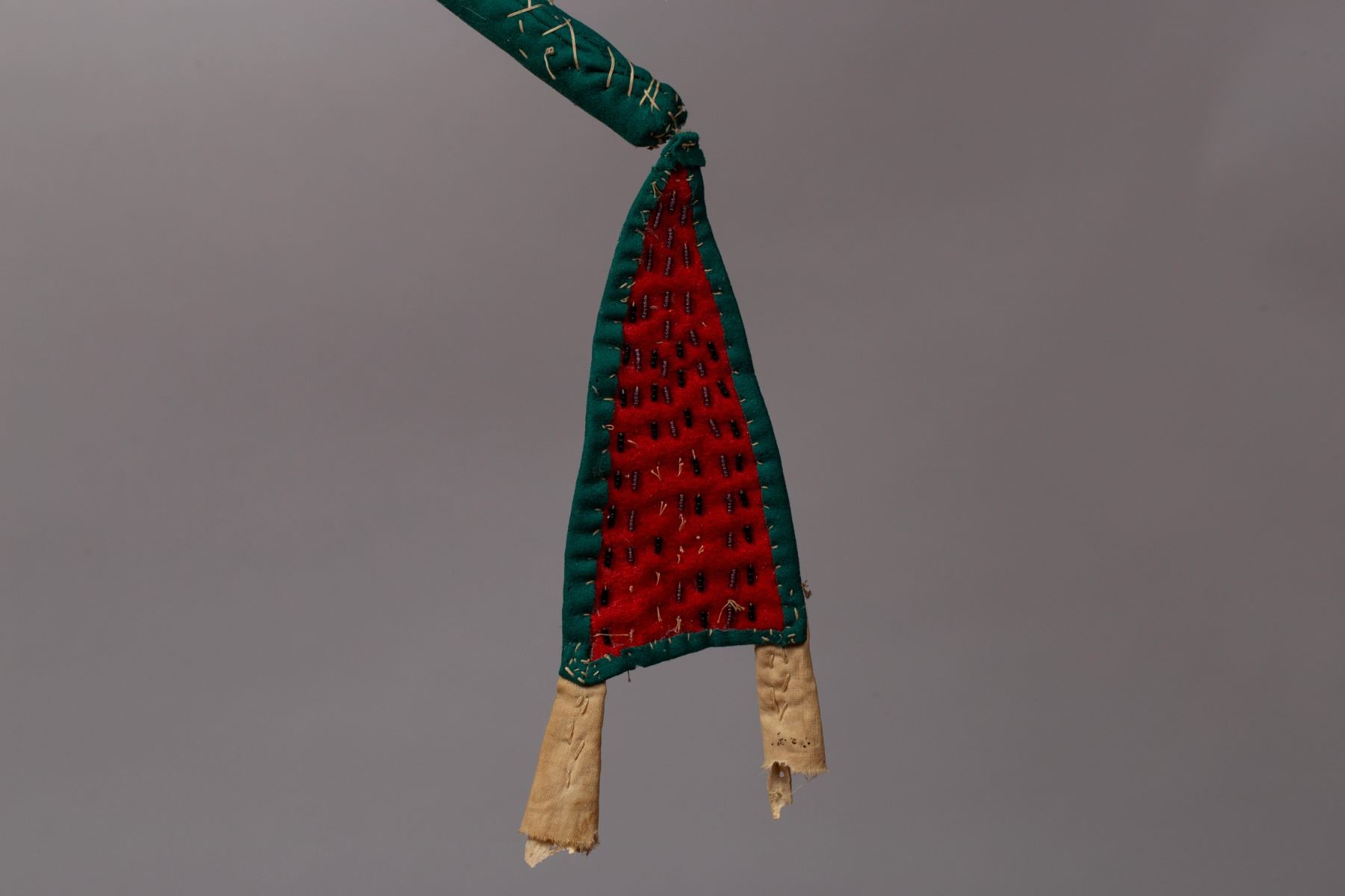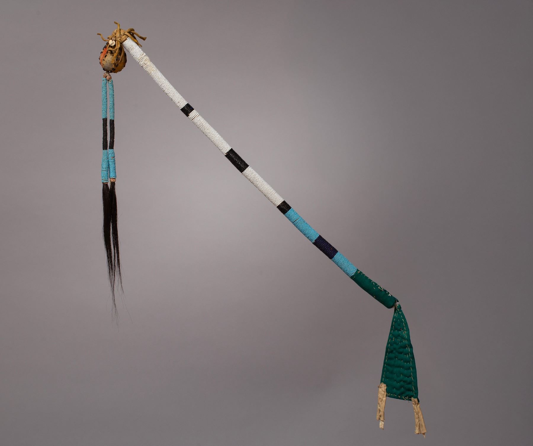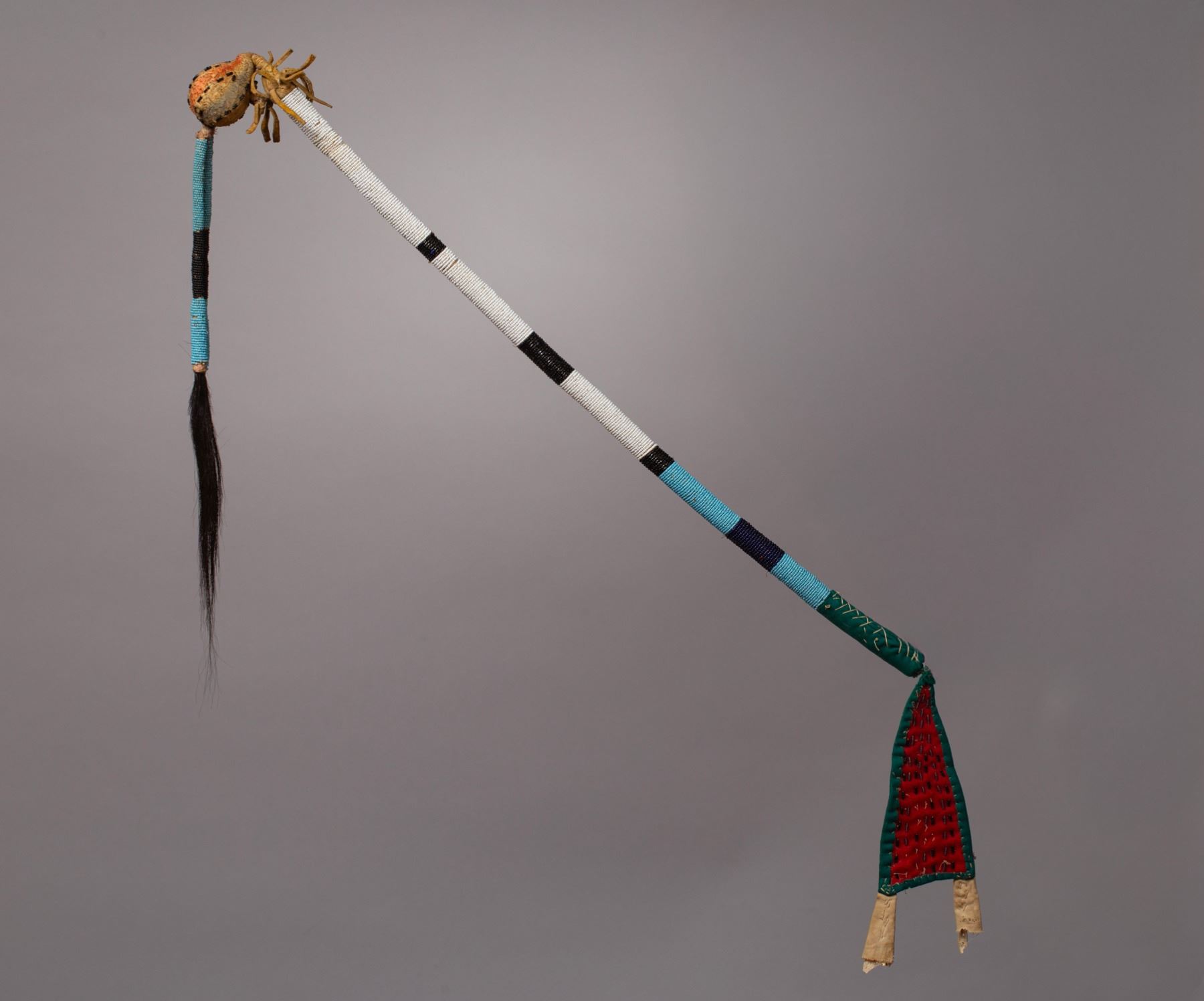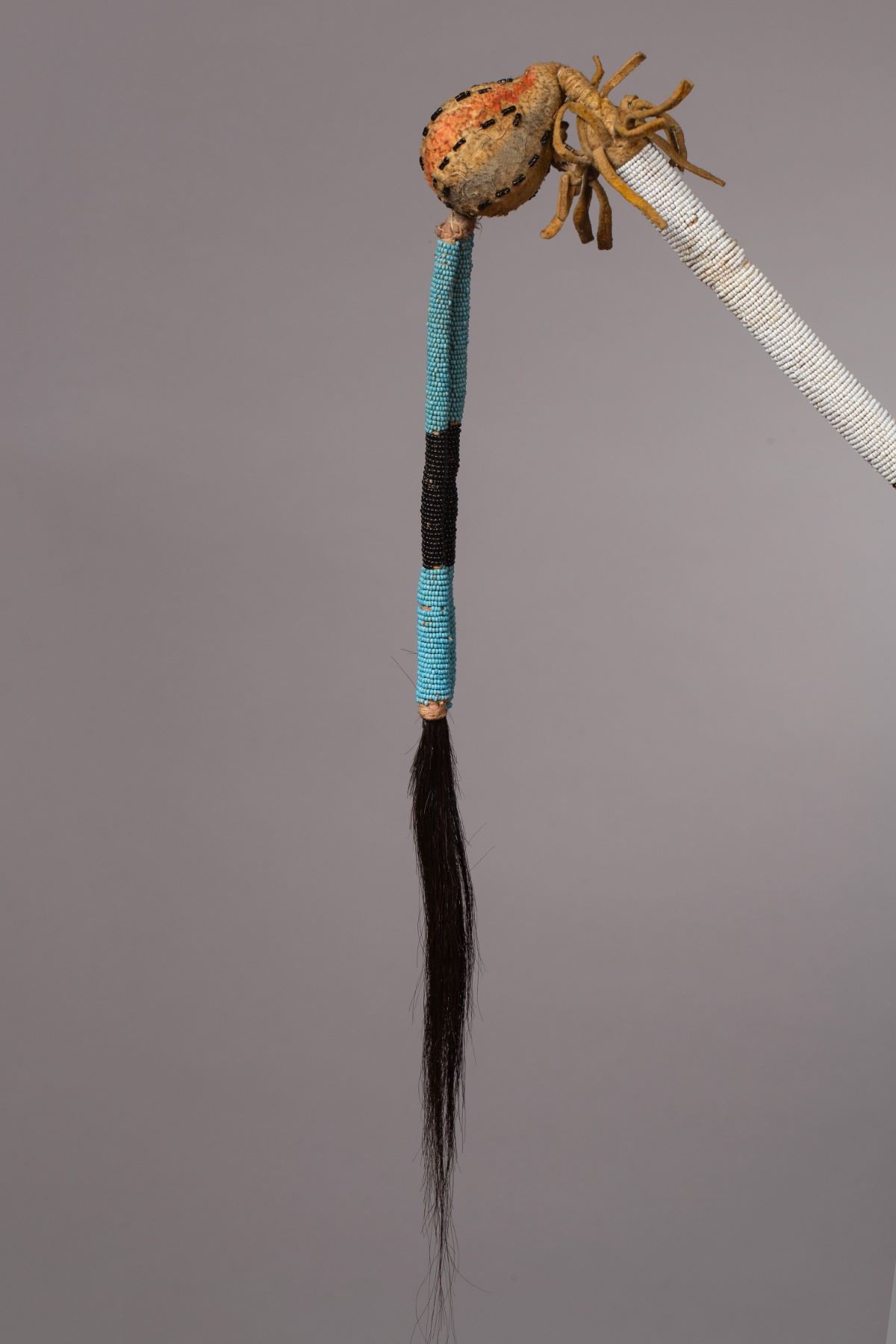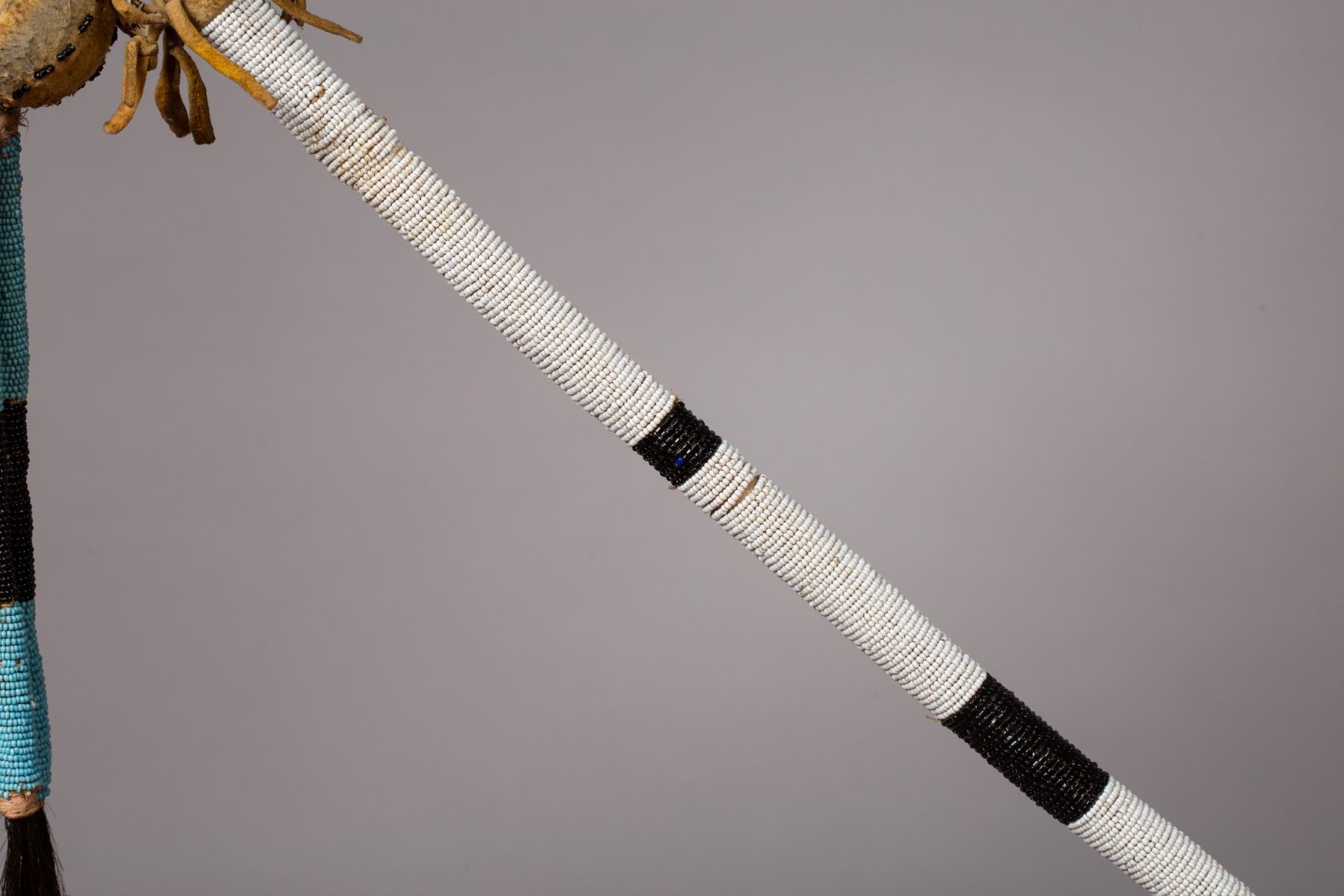 Fully beaded medicine stick. Native American medicine sticks were used for various spiritual and ceremonial purposes, including prayer, healing, dance and to grant the holder the right to speak without interruption in councils. 27"L