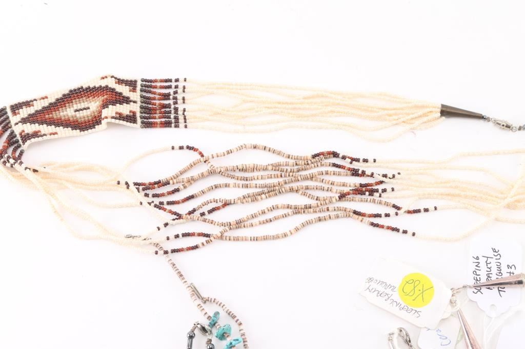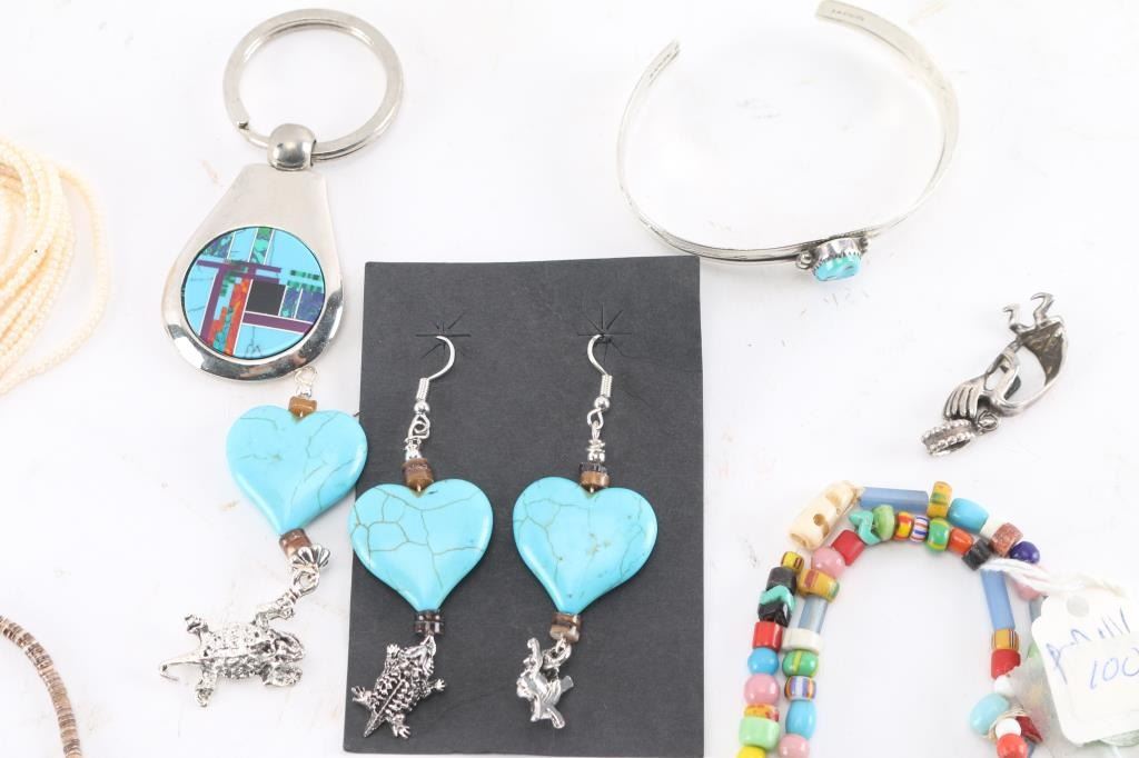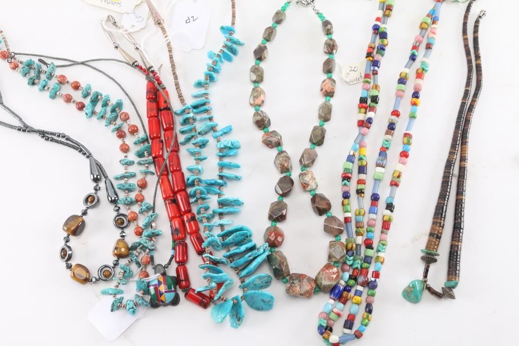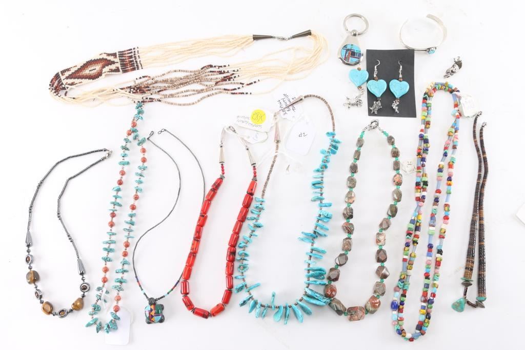 (1) Coral beaded Necklace (1) Turquoise and Heishi Necklace (1) Hopi Turtle Fetish Necklace (1)Sterling & Turquoise Cuff and More!