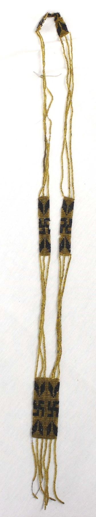Antique/Vintage Native American Beaded Rolling Log Necklace, measures 38''L end to end, pendant measures 6'' x 1.25'', damage to 1 of the strands, ca. 1900s