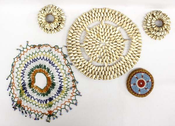 Native American Beadwork for the Hair, including Large Cowrie Shell Hair Piece