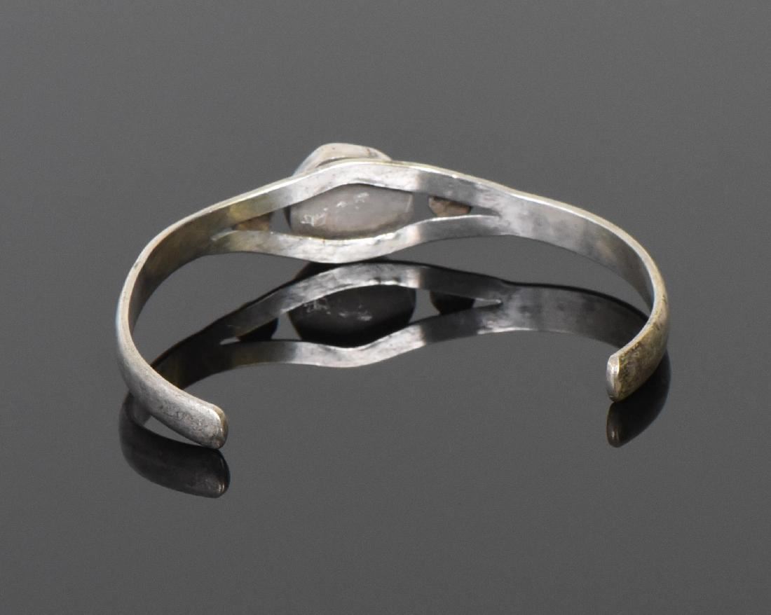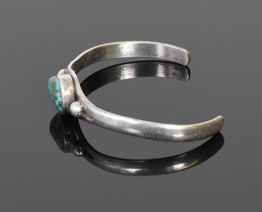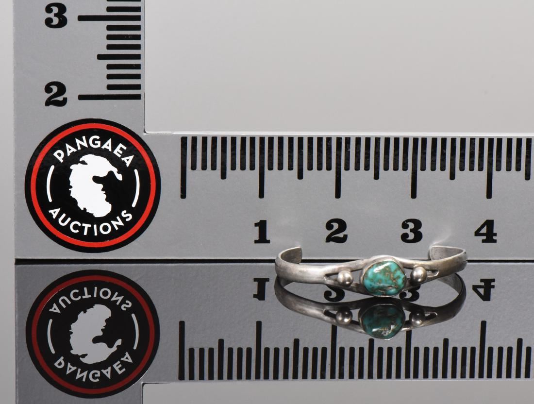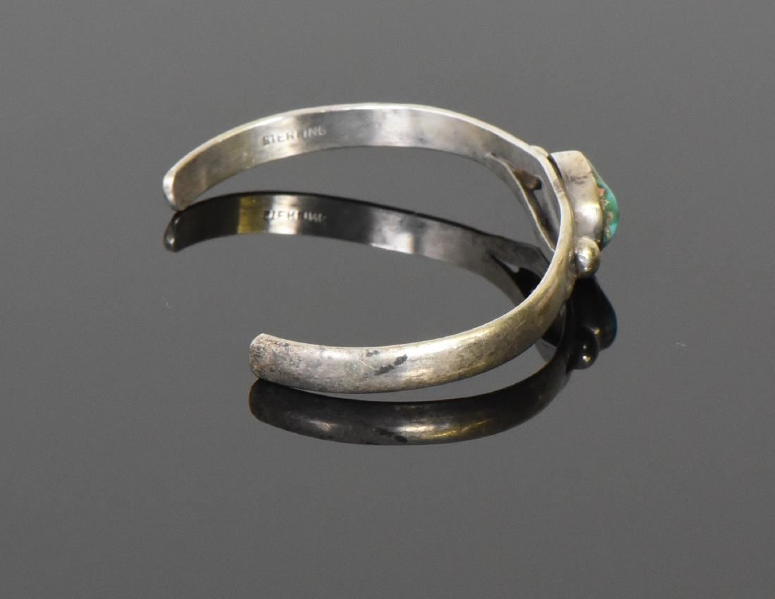 Native American Beautiful Green Turquoise and 925 Sterling Silver Cuff Bracelet. Stamped: Sterling. Silver Tested. Estimated more than 50 yrs old. Native Americans also known as American Indians or just simply Indians are considered to be people whose pre-Columbian ancestors were indigenous to the lands within the nation's modern boundaries. These peoples were composed of numerous distinct tribes, bands, and ethnic groups, and many of these groups survive intact today as partially sovereign nations. The Iroquois, living around the Great Lakes and extending east and north, used strings or belts called wampum that served a dual function: the knots and beaded designs mnemonically chronicled tribal stories and legends, and further served as a medium of exchange and a unit of measure. The keepers of the articles were seen as tribal dignitaries. Pueblo peoples crafted impressive items associated with their religious ceremonies. Kachina dancers wore elaborately painted and decorated masks as they ritually impersonated various ancestral spirits. Sculpture was not highly developed, but carved stone and wood fetishes were made for religious use. Superior weaving, embroidered decorations, and rich dyes characterized the textile arts. Both turquoise and shell jewelry were created, as were high-quality pottery and formalized pictorial arts. Navajo spirituality focused on the maintenance of a harmonious relationship with the spirit world, often achieved by ceremonial acts, usually incorporating sand painting. The colors made from sand, charcoal, cornmeal, and pollen depicted specific spirits. These vivid, intricate, and colorful sand creations were erased at the end of the ceremony. (Wikipedia) Size: See Ruler Photo. (Photos Represent The Condition Of The Lot.)