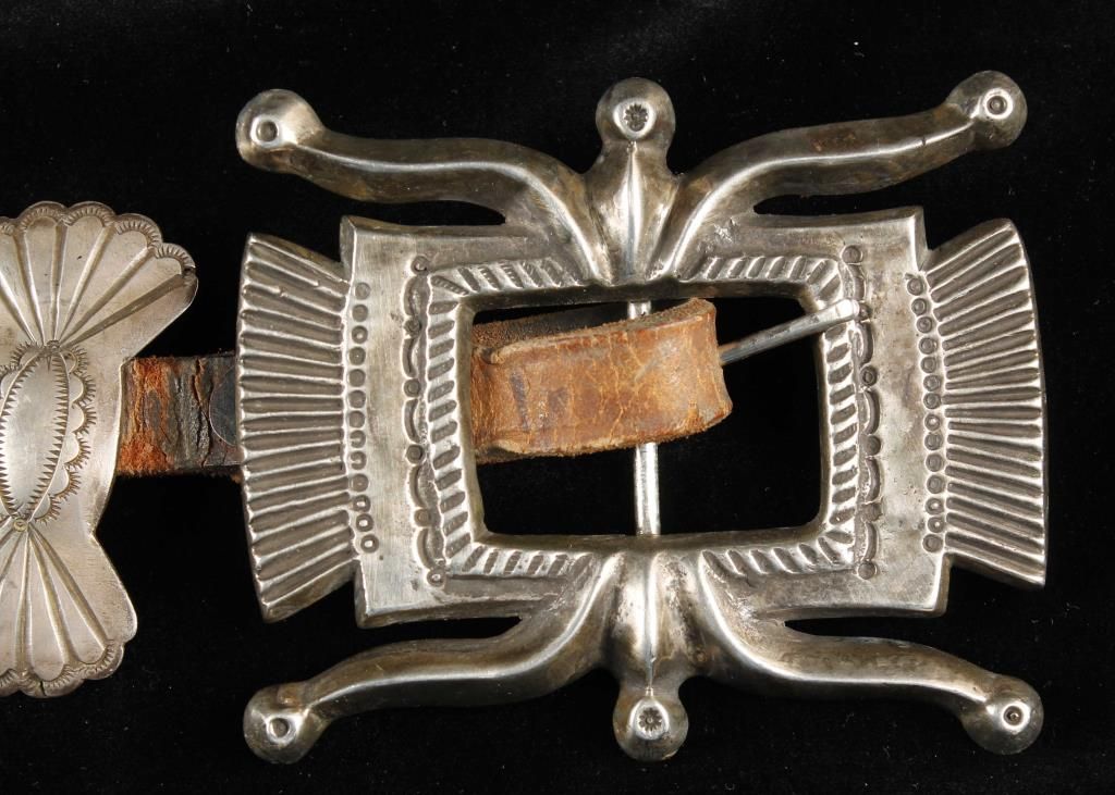 High quality early Navajo belt with large conchos and very heavy buckle.
