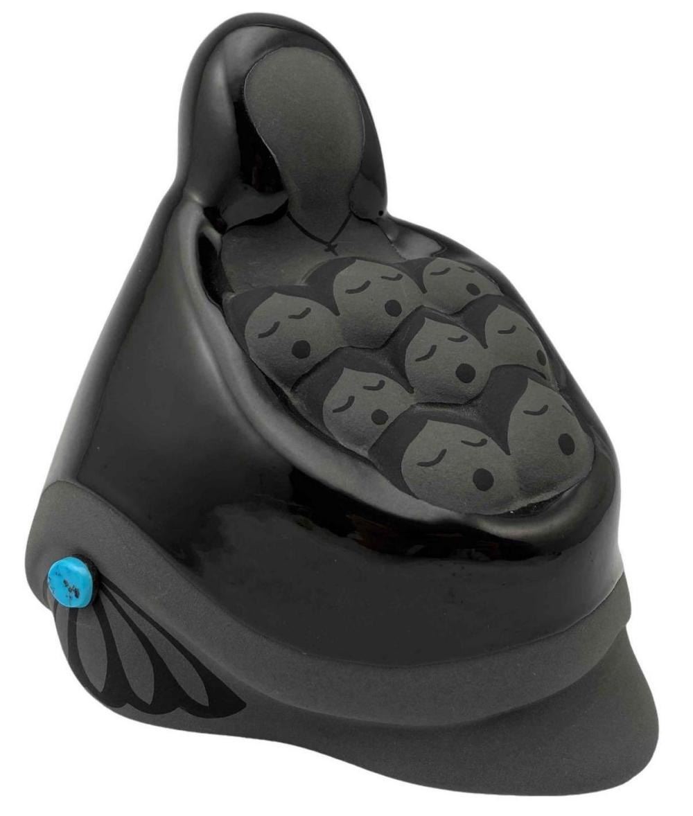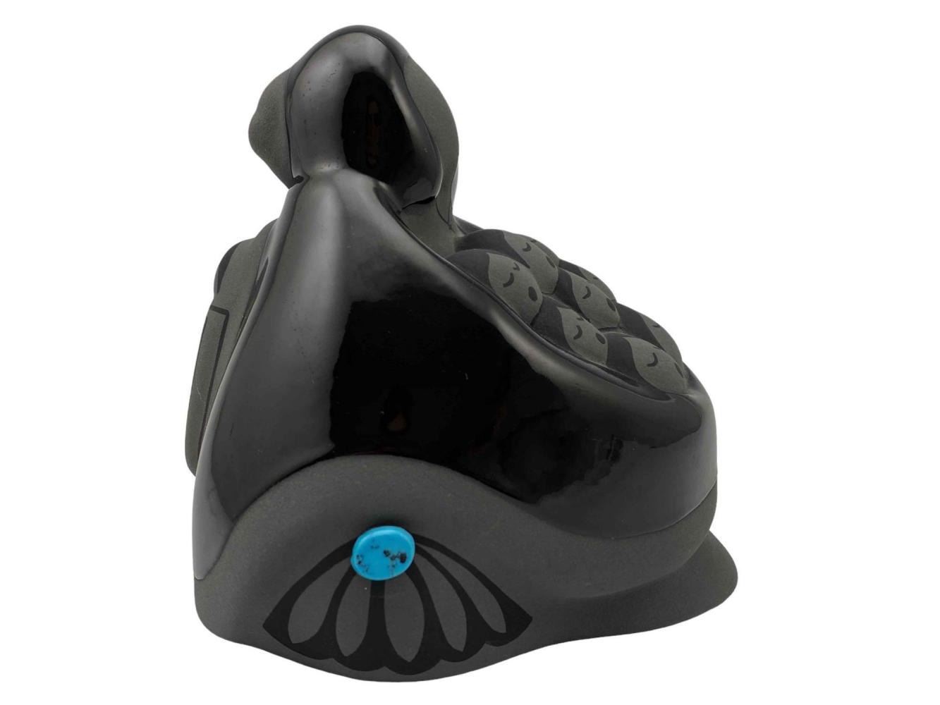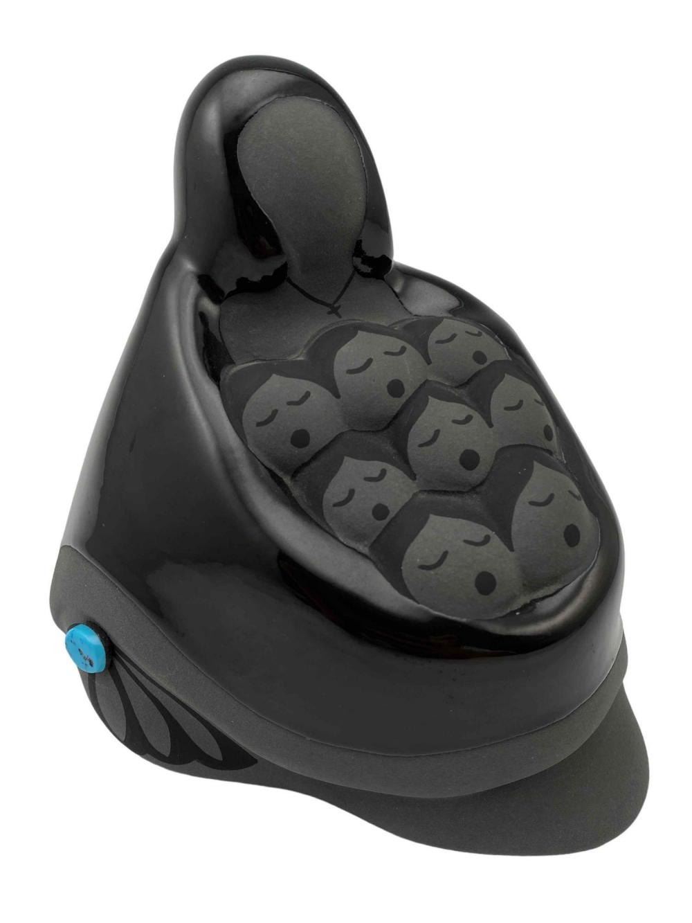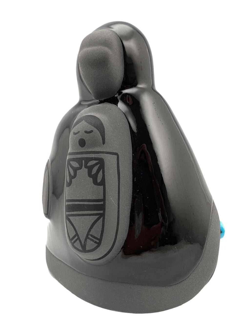 Native American Black On Black Pottery Storyteller, Signed Lawrence Vargas Albuq N.M. Approximately 5.625H x 5.625L x 3.625W in.