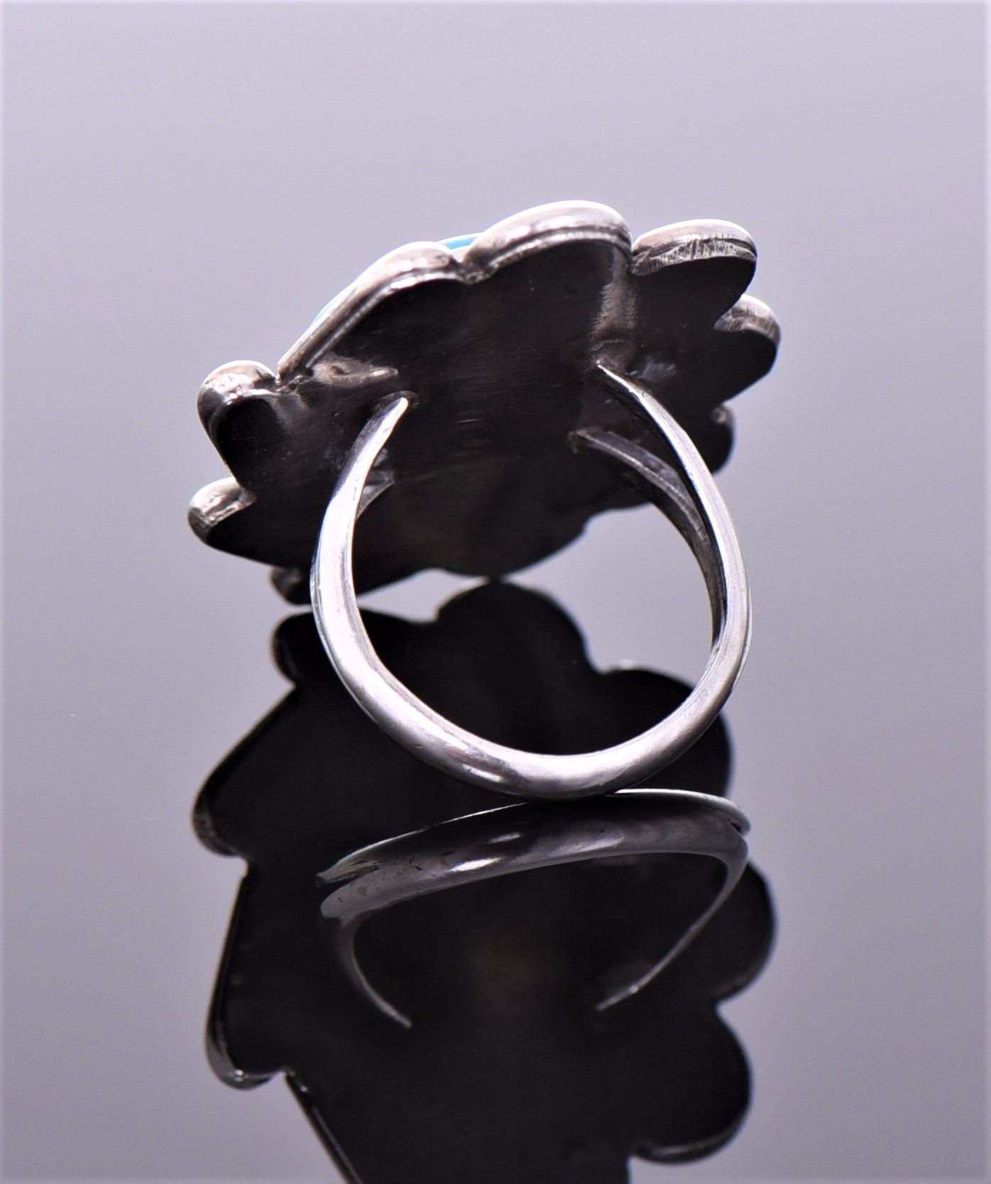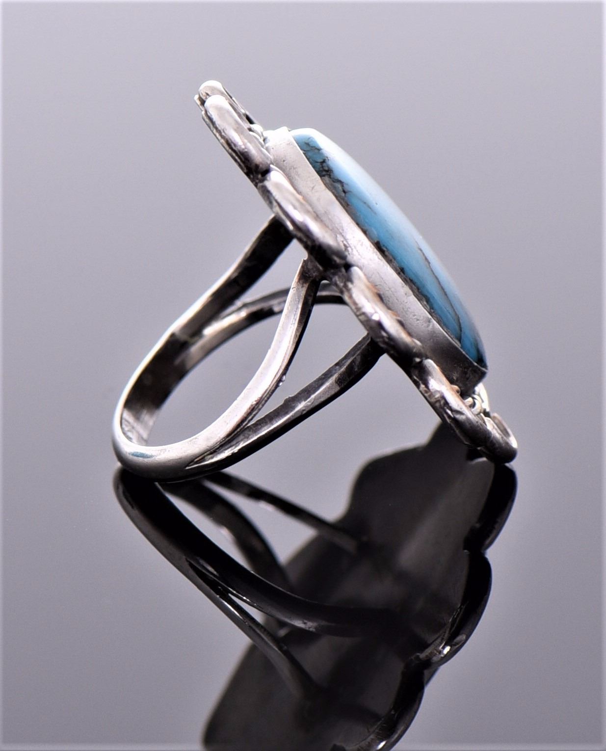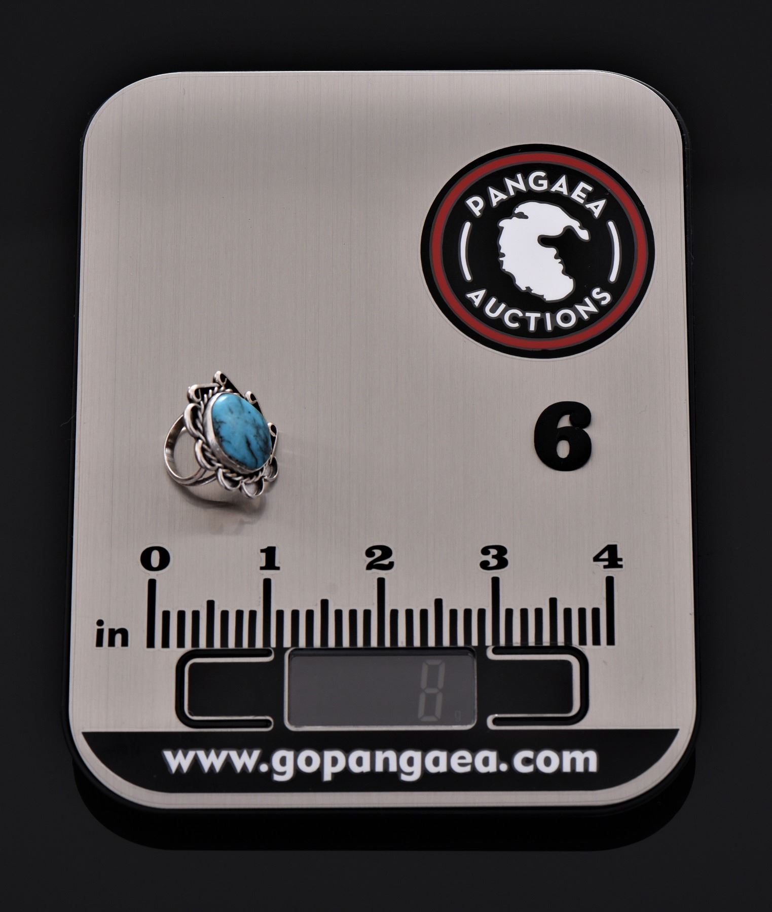 Native American Blue Turquoise Sterling Silver Ring With Rope And Loop Design. Silver Tested. Ring Size 6. Estimated more than 50 yrs. old. 925 Sterling Silver consisting of 92.5% silver and 7.5% copper. Tested Positive using Nitric Acid Chemical Scratch Test, Cloth Rub Test, Smell Test, and Magnet Test. Markings of 925 or Sterling stamp. The reason silver needs to be combined with other metals is that it is very difficult to make great designs with just pure silver, which is very soft and malleable. A bit of hardness has to be introduced by adding other metals such as copper. That is why jewelers are capable of making the most intricate an complex designs with 925 Sterling Silver. Silver is one of the most valuable elements next to gold. Mexico is the leading producer of sliver, followed by the United States, Canada, Australia, Spain, Peru, and Russia. Many countries do not require their precious metal items to be stamped and therefore we test to ensure we accurately represent the product. Size and/or Weight: See Measurement Photo. (Photos Represent The Lot Condition, Pangaea Auctions)