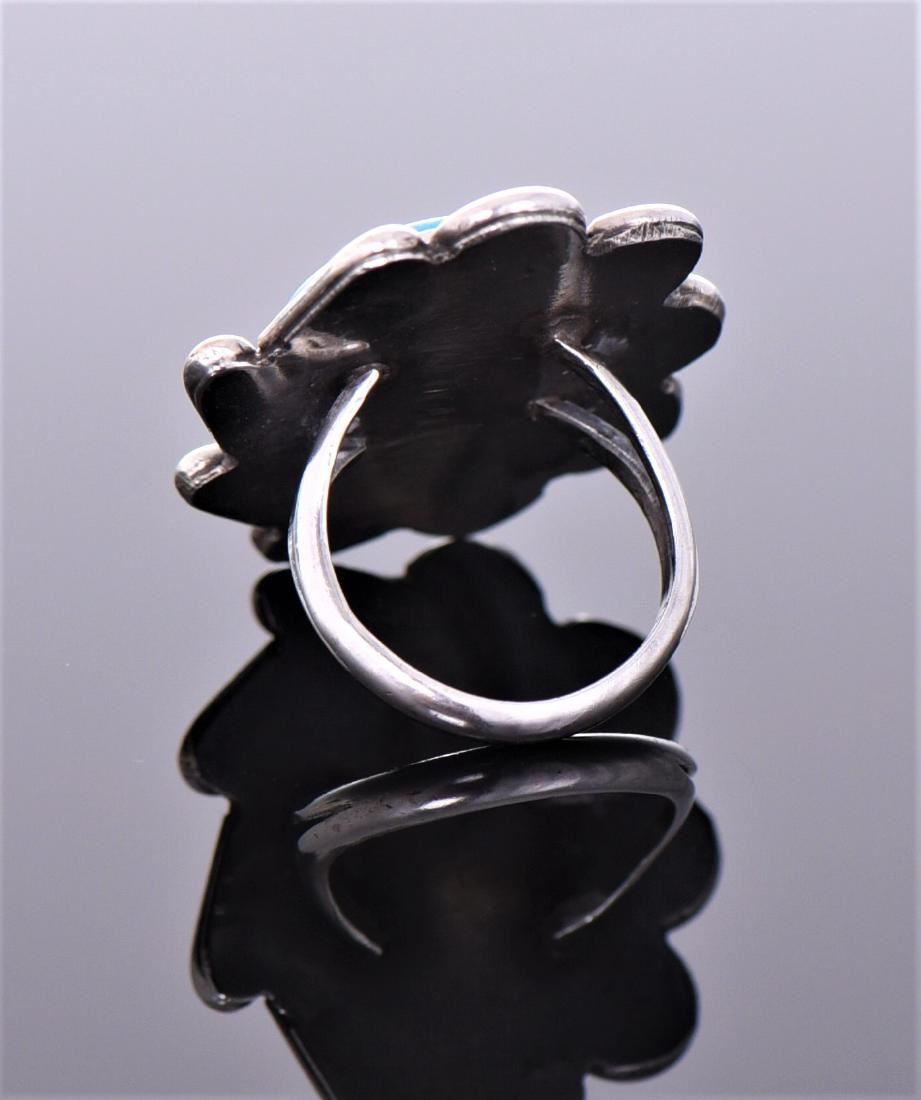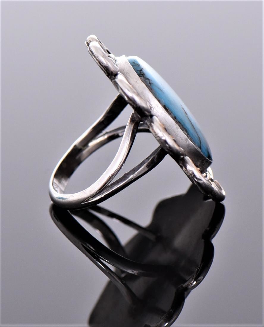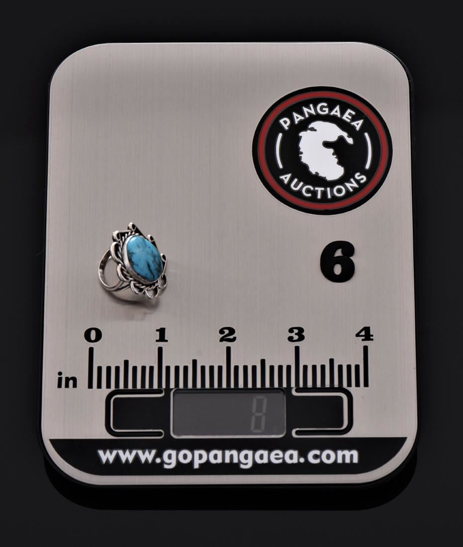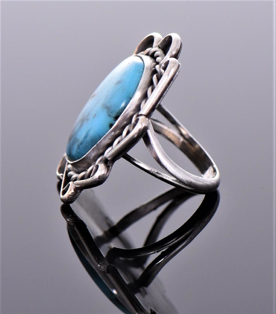 Native American Blue Turquoise Sterling Silver Ring With Rope And Loop Design. Silver Tested. Ring Size Estimated more than 50 yrs old. 925 Sterling Silver consisting of 92.5% silver and 7.5% copper. Tested Positive using Nitric Acid Chemical Scratch Test, Cloth Rub Test, Smell Test, and Magnet Test. Markings of 925 or Sterling stamp. The reason silver needs to be combined with other metals is that it is very difficult to make great designs with just pure silver, which is very soft and malleable. A bit of hardness has to be introduced by adding other metals such as copper. That is why jewelers are capable of making the most intricate an complex designs with 925 Sterling Silver. Silver is one of the most valuable elements next to gold. Mexico is the leading producer of silver, followed by the United States, Canada, Australia, Spain, Peru, and Russia. Many countries do not require their precious metal items to be stamped and therefore we test to ensure we accurately represent the product. Size and/or Weight: See Measurement Photo. (Photos Represent The Lot Condition. Read T&C's)