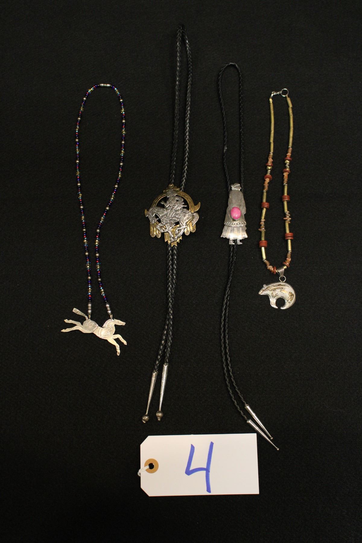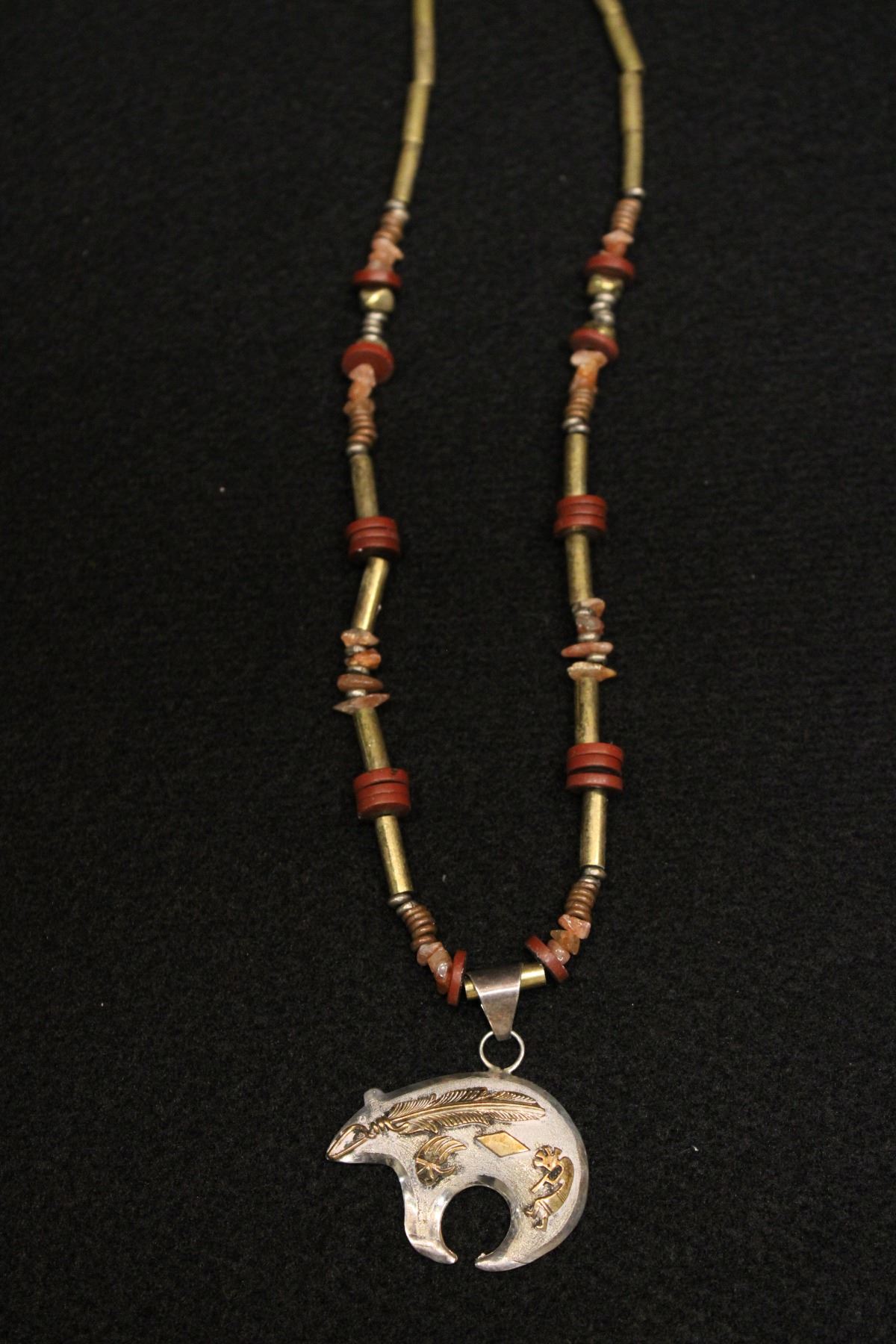 Two Bolos: One signed Earnest Franklin, one signed Marion. One necklace signed Mark Yazzie, sterling w/ 12k gold pendant.