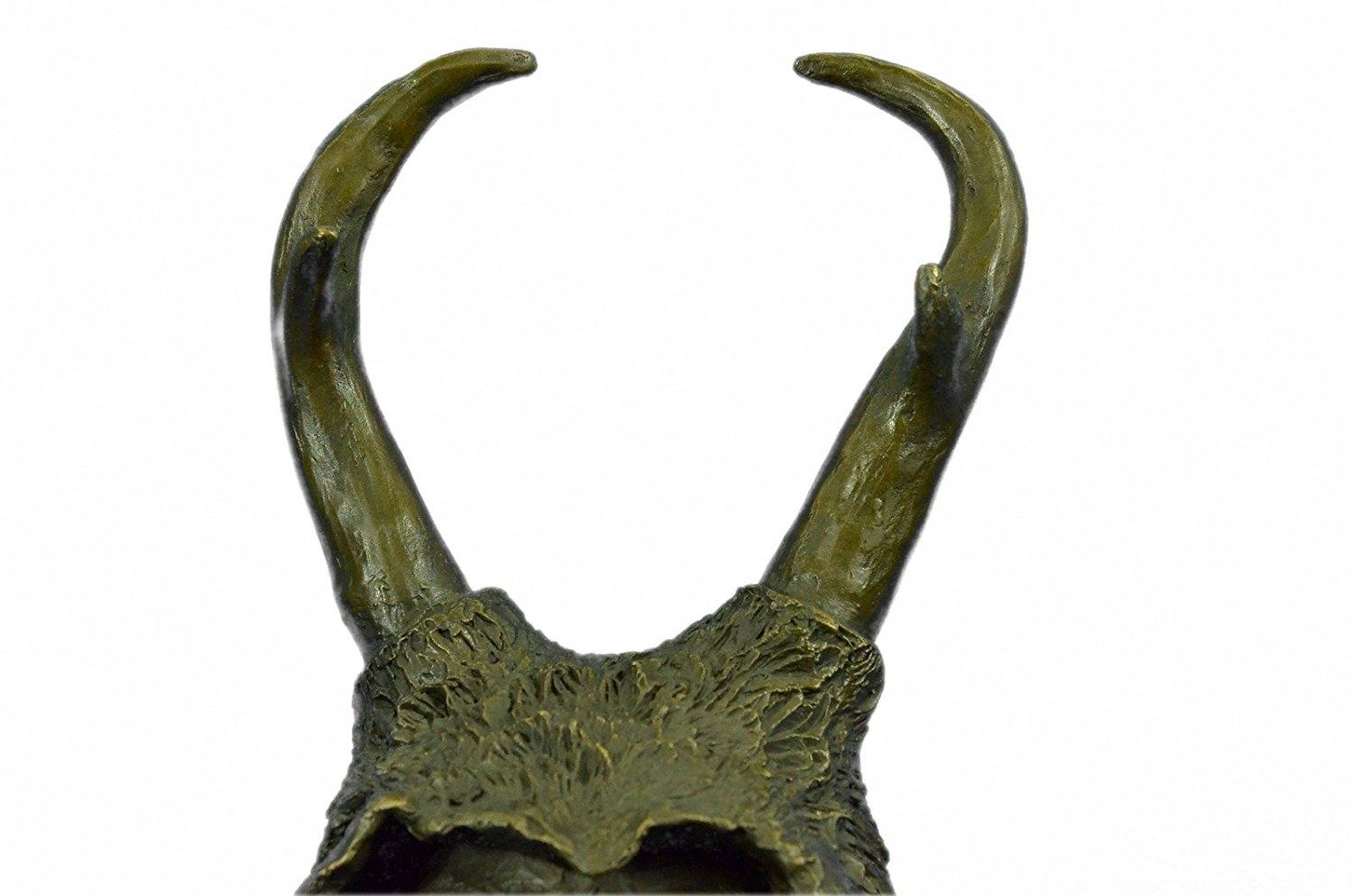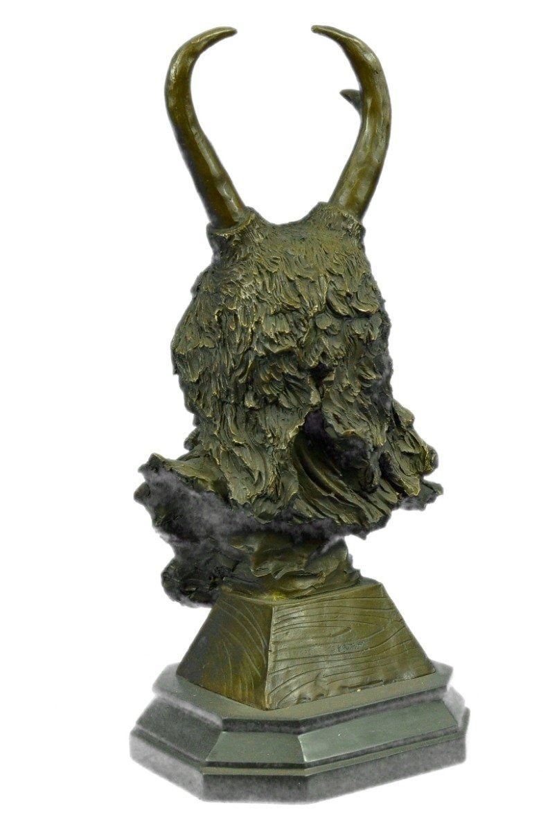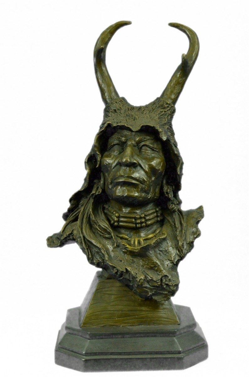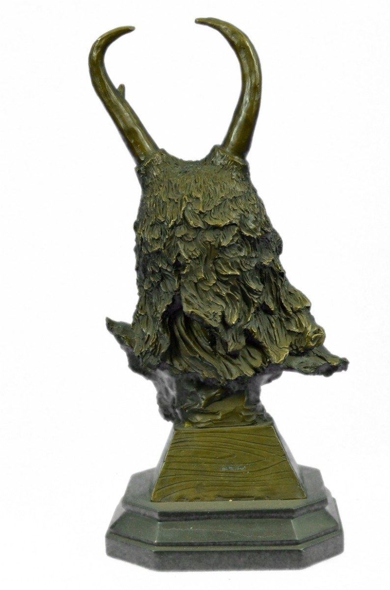 The artist Kamiko designed this piece. His work primarily features warriors of various time periods and cultures. This bust is of a Viking warrior. The horns of his helmet extend and curve upwards almost touching each other. The warrior appears more human than the fierce depictions of Viking warriors that exist. The sculpture was crafted using the lost wax method. It is on a black marble base. Bronze Dimensions with Marble Base: Height 17 X Width 9 inches. Weight: 17 LBS. Inventory: 13Y9288031