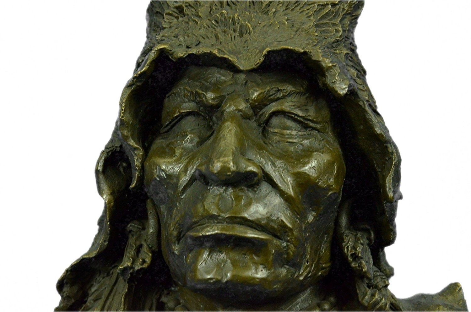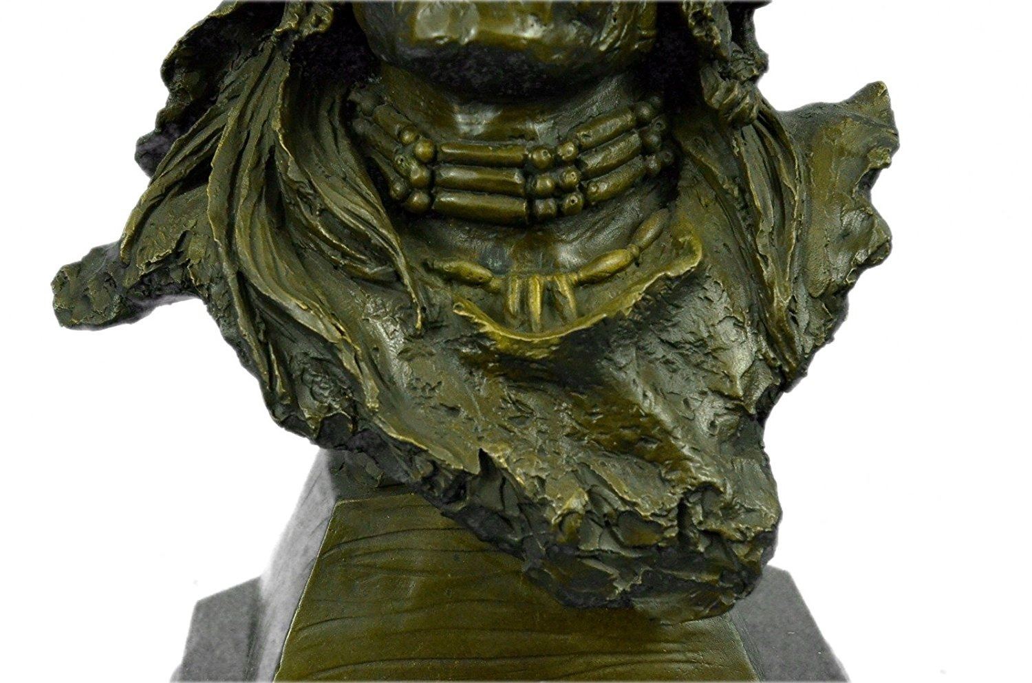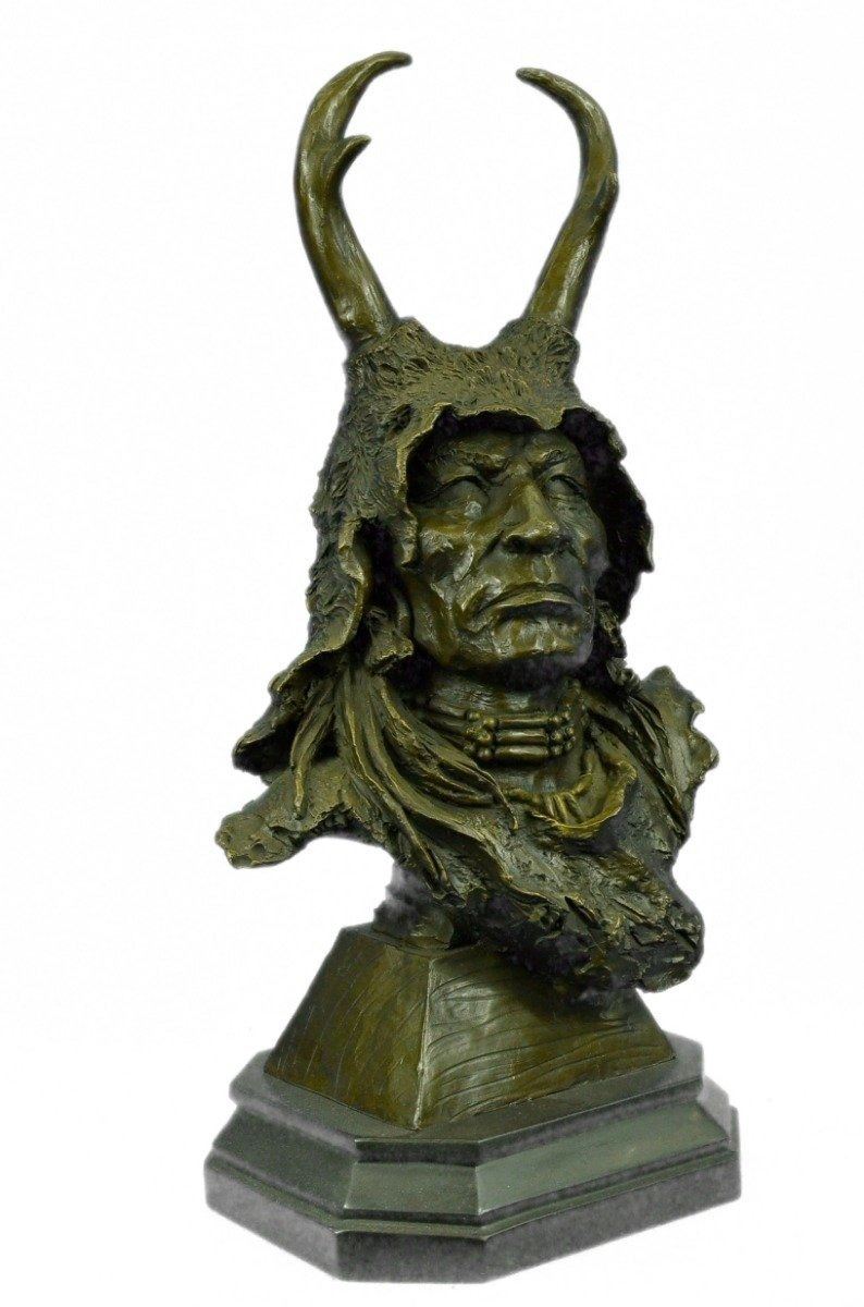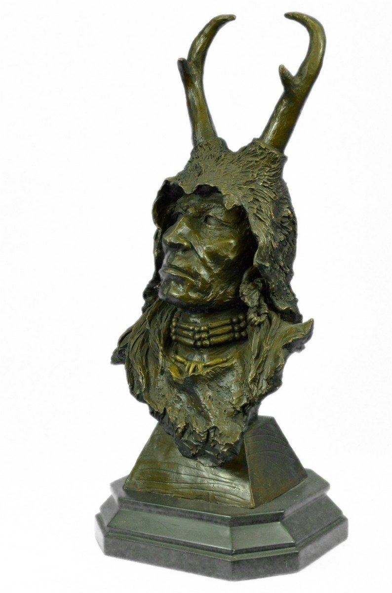 The artist Kamiko designed this piece. His work primarily features warriors of various time periods and cultures. This bust is of a Viking warrior. The horns of his helmet extend and curve upwards almost touching each other. The warrior appears more human than the fierce depictions of Viking warriors that exist. The sculpture was crafted using the lost wax method. It is on a black marble base. Bronze Dimensions with Marble Base: Height 17 X Width 9 inches. Weight: 17 LBS. Inventory: 13Y9288031