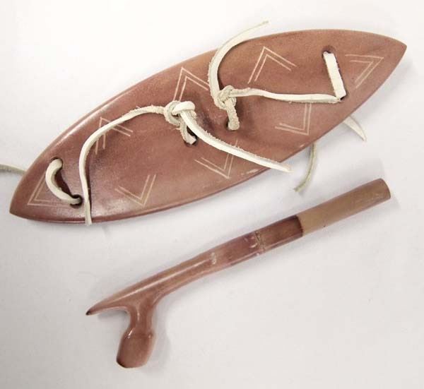 Native American Carved Soapstone Pipe, Signed by artist and comes on its own carved soapstone stand, measures 2.5'' x 7''