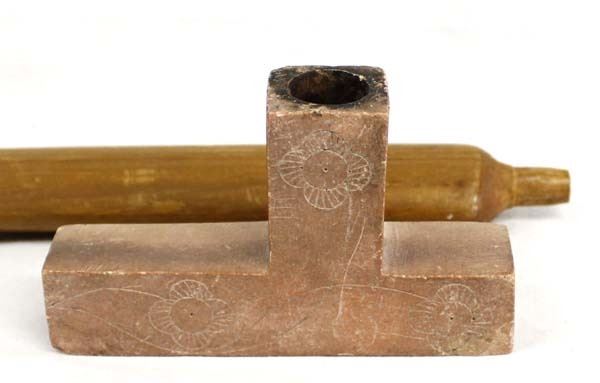 Native American Catlinite Pipe, wood stem, measures 22''L