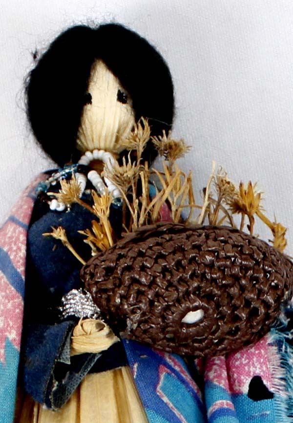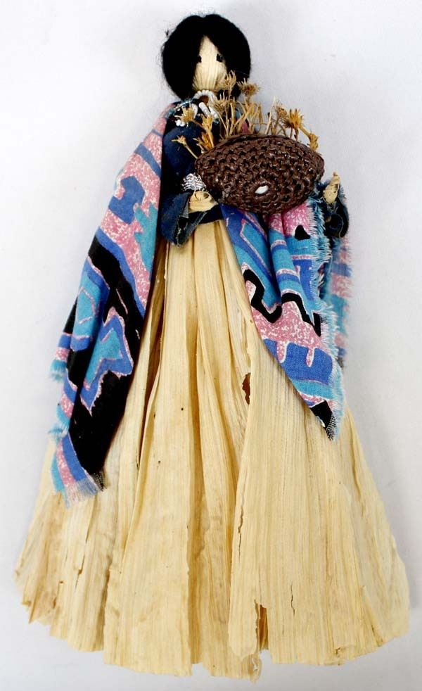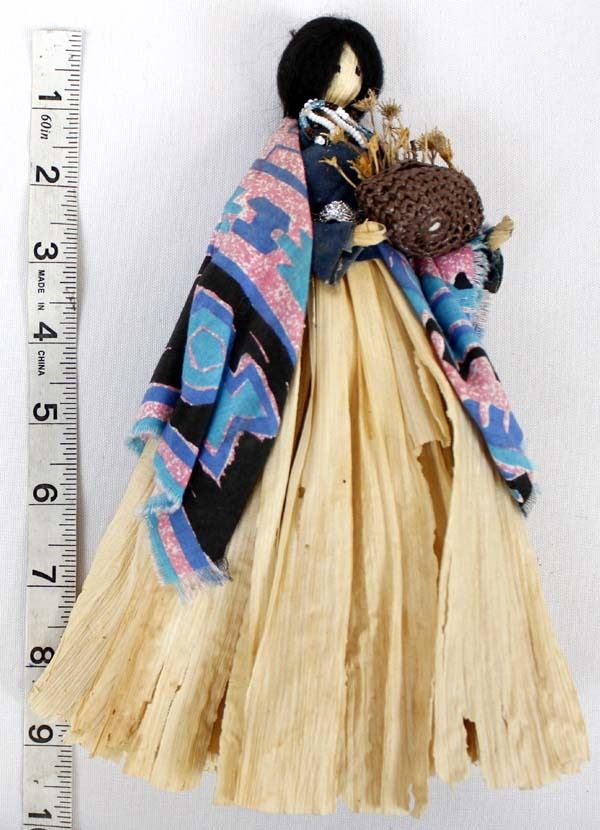 Native American Cherokee Corn Husk Doll, measures 9.5''L x 6.5''W x 2.5''D