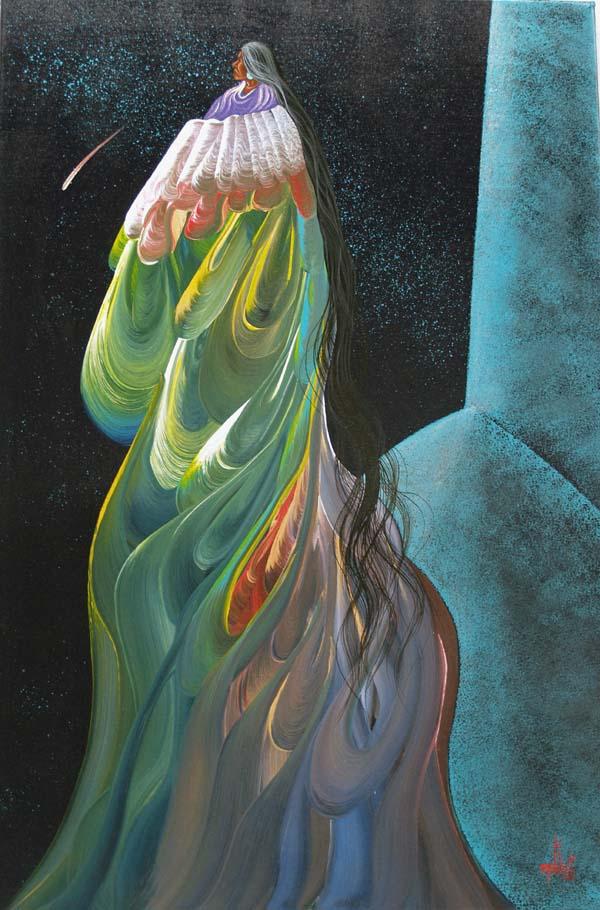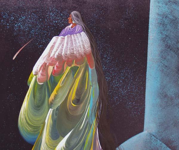 Native American Cherokee Original Acrylic Painting by Bill Rabbit, ''Make a Wish'' comes with certificate of authenticity, measures approx. 24'' x 36''. Buyers Pay Actual Shipping and Handling Charges(see terms and conditions for more information)