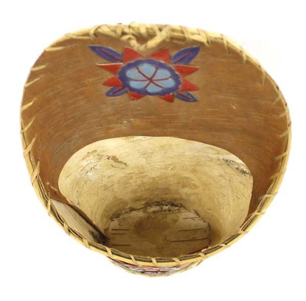 Native American Lac du Flambeau Chippewa Birch Bark Wall Basket, measures 11'' x 7.5'' x 4'', FYI: ''The Band has inhabited the Lac du Flambeau area (Lake Superior) since 1745. The Band acquired the name Lac du Flambeau from its gathering practice of harvesting fish at night by torchlight. The name Lac du Flambeau, or Lake of the Torches, refers to this practice and was given to the Band by the French traders and trappers who visited the area.''