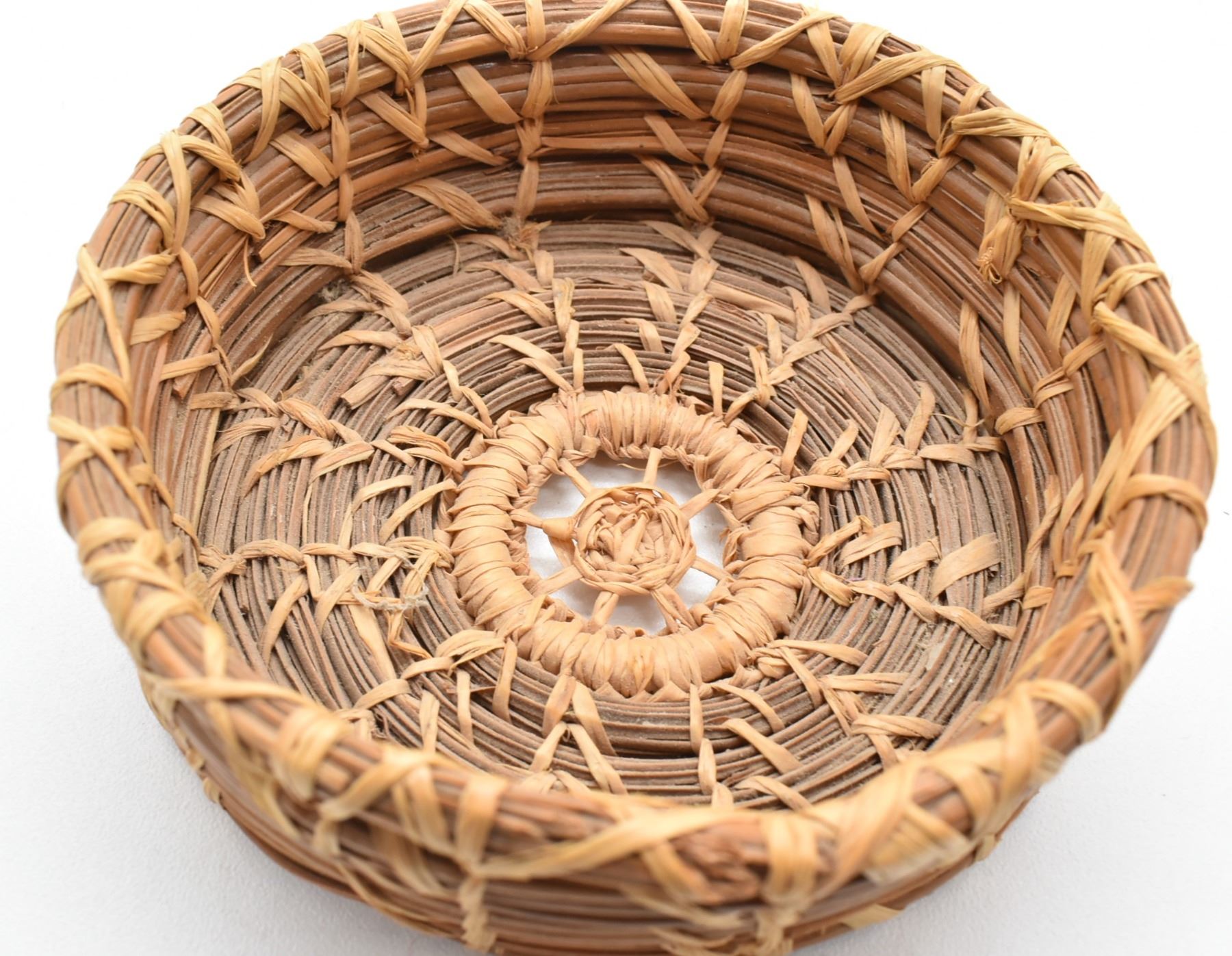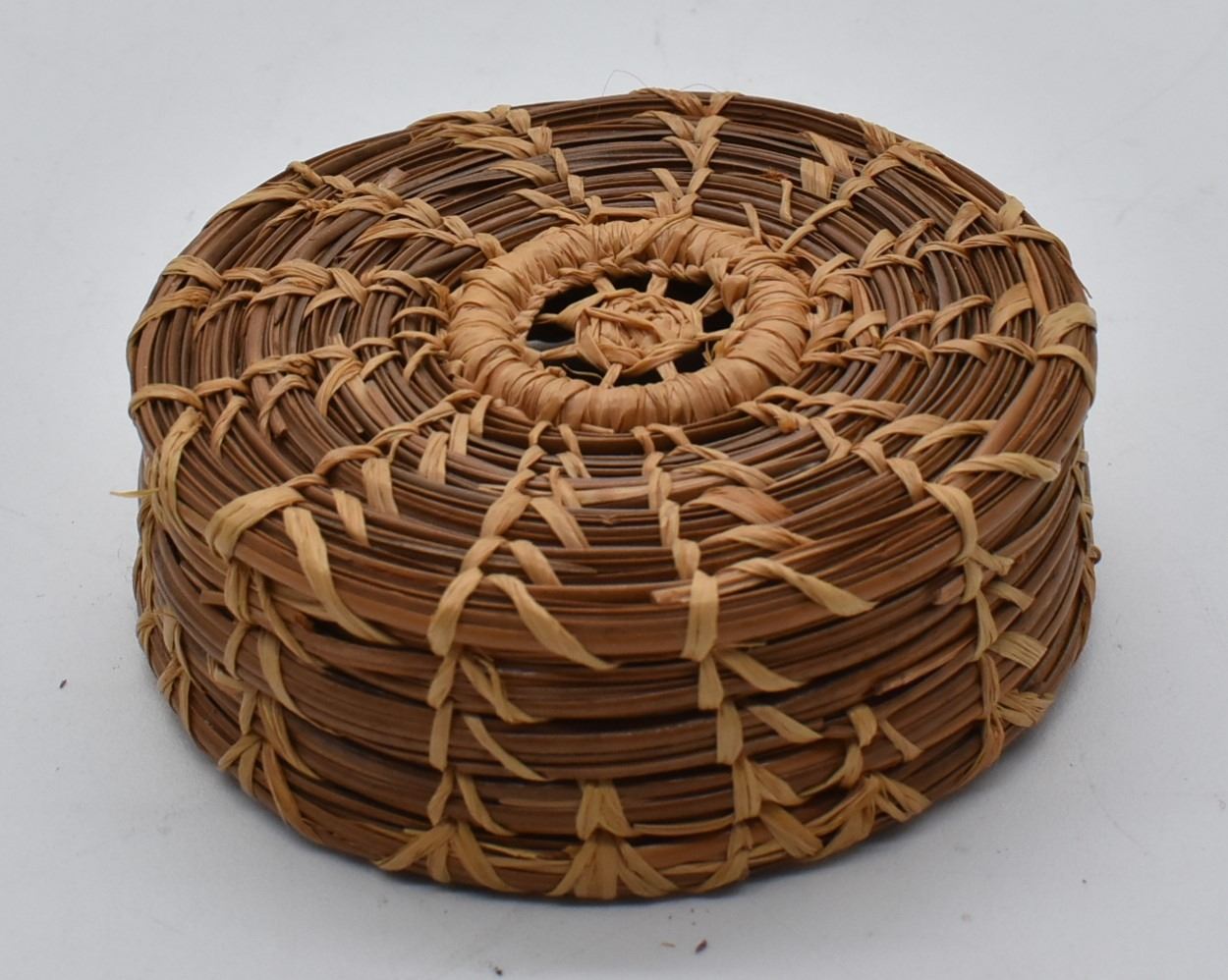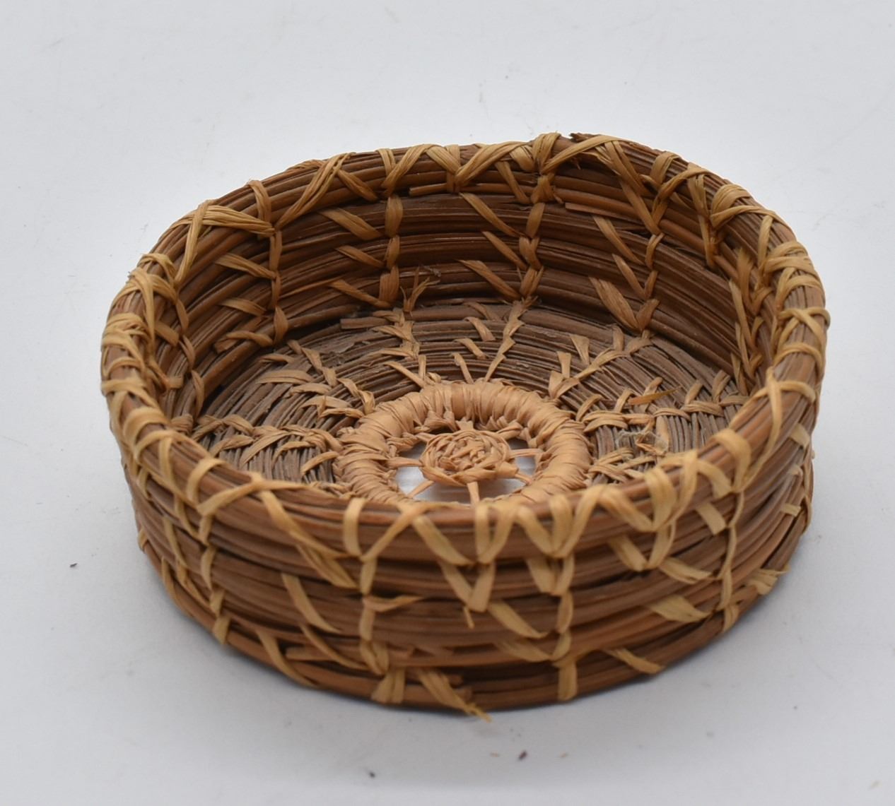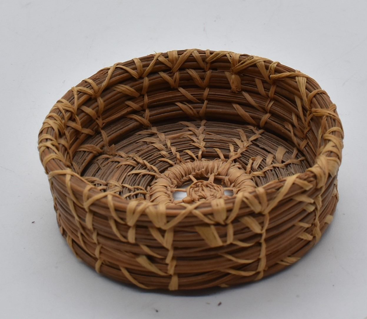 Native American Coushatta Pine Needle Basket, measures 1'' x 3''