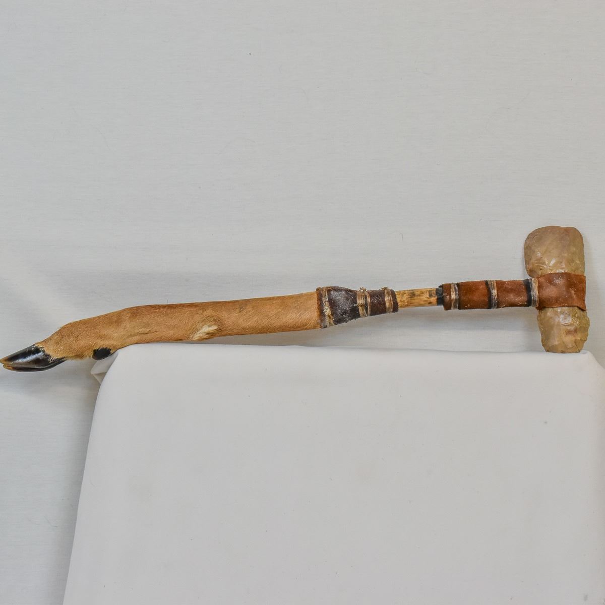 Native American Deer Leg and Stone Tomahawk, measures 5" x 25" x 1.5"