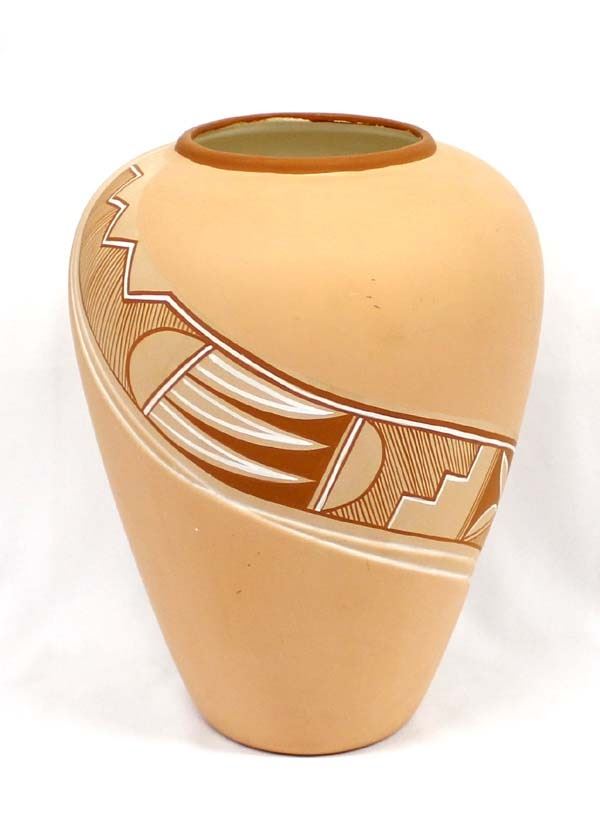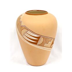Native American Designed Hand Painted Ceramic Vase, measures 8.5'' x 11''H