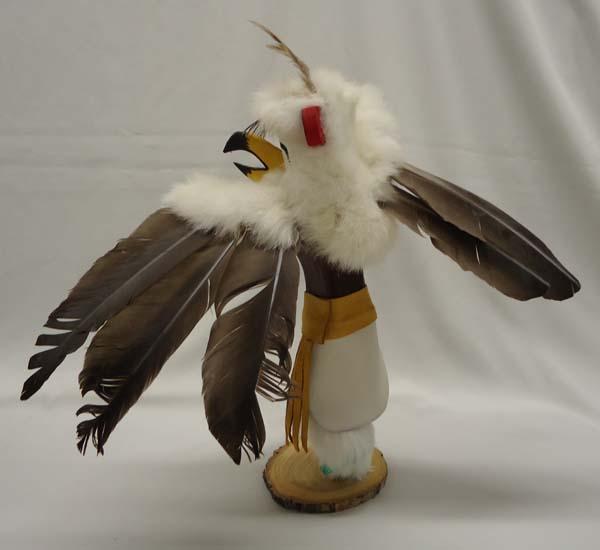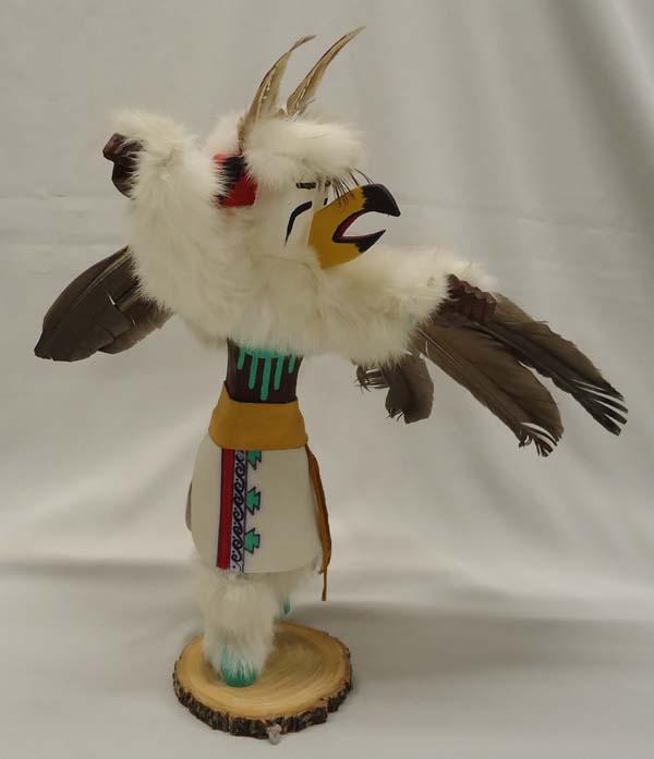 Eagle Kachina, measures approx. 14''H including feathers x 14''W x 6 1/2''. Some feather damage. Buyers Pay Actual Shipping and Handling Charges(see terms and conditions for more information).