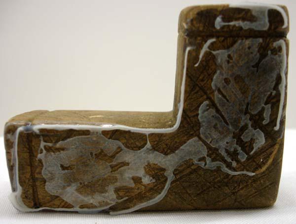 Native American Etched Pipe Bowl. Measures 3.25''x2.5''x1.25''. Has glue on one side where it was apparently glue to a display board. Buyers Pay Actual Shipping and Handling Charges(see terms and conditions for more information).