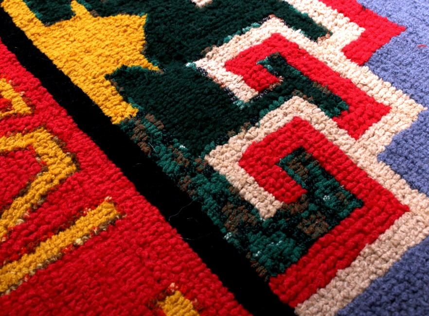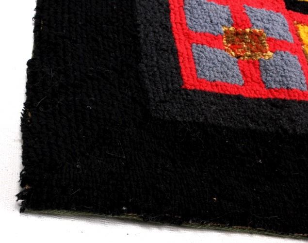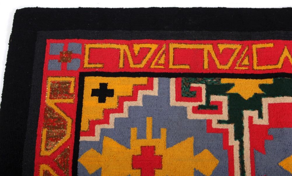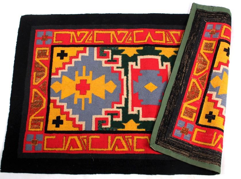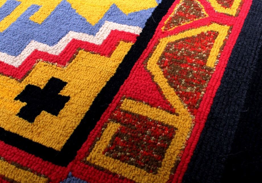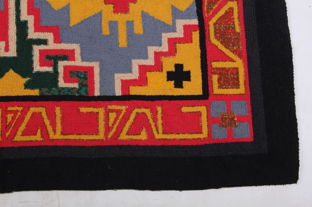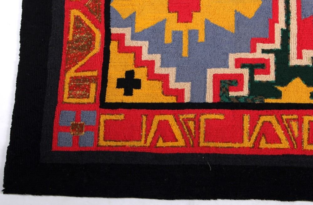 This lot features a finely woven native american wool rug. This rug is a colorfully woven example of fine wool rugs. It is tightly woven and has intricate designs that really pop. It looks to be made in the early to mid 1900's. It is in good condition for its age, showing light wear. It measures 35 1/2" W x 58 1/2" L