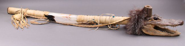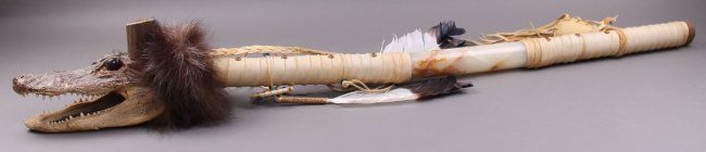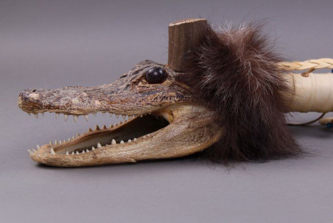 Native American Gator Head Peace Pipe. (Size: See last photo for measurement.)
