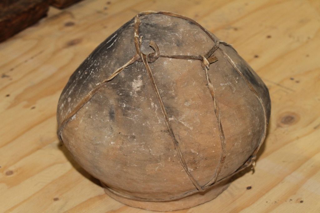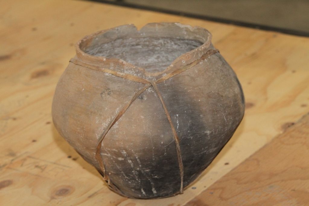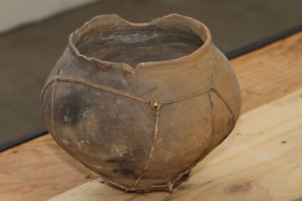 Native American Hand Made Pottery Bowl - This Bowl was a Dug from the ground in the Central American/ Southwest America Area. Has Rawhide for Structure.