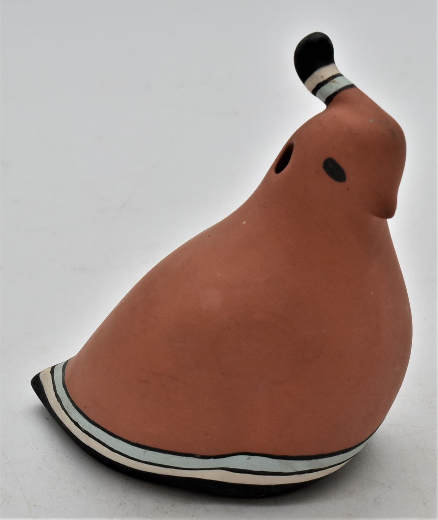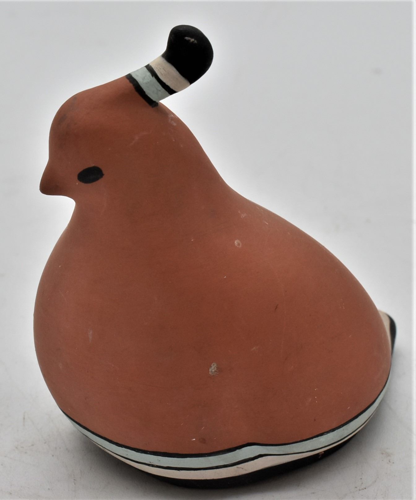 Native American Hand Painted Ceramic Pottery Quail, measures 4'' x 4''
