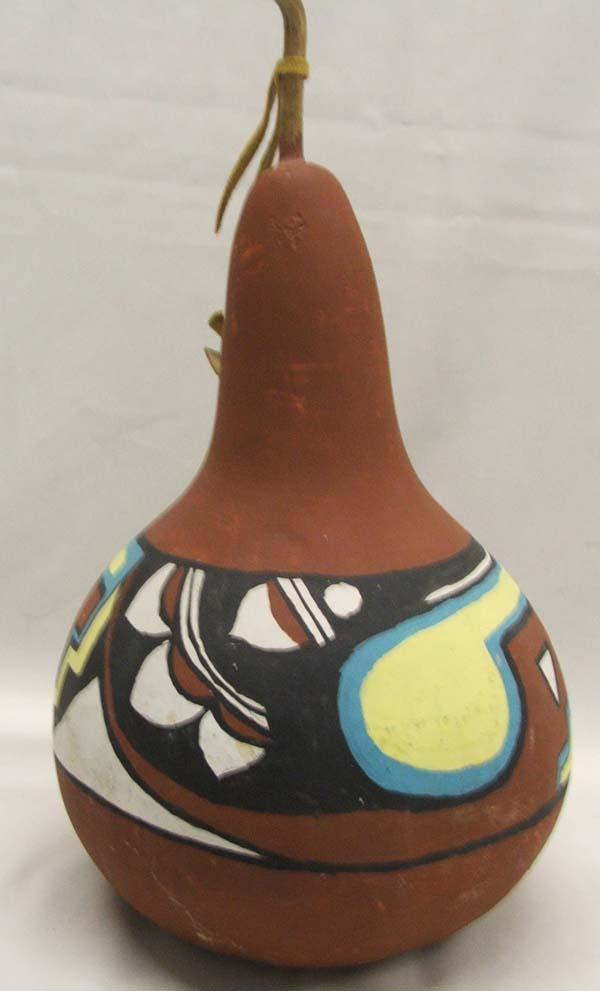 Hand Painted Pueblo Gourd, measures approx. 13'' x 7.5''. Buyers Pay Actual Shipping and Handling Charges(see terms and conditions for more information).