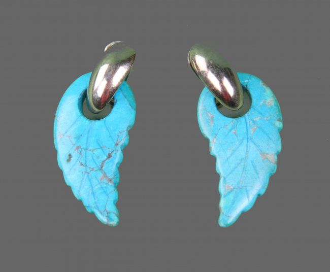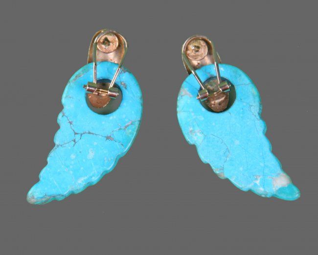 Native American Handmade Turquoise Feather Earrings (Size: See Last Photo for Measurements)