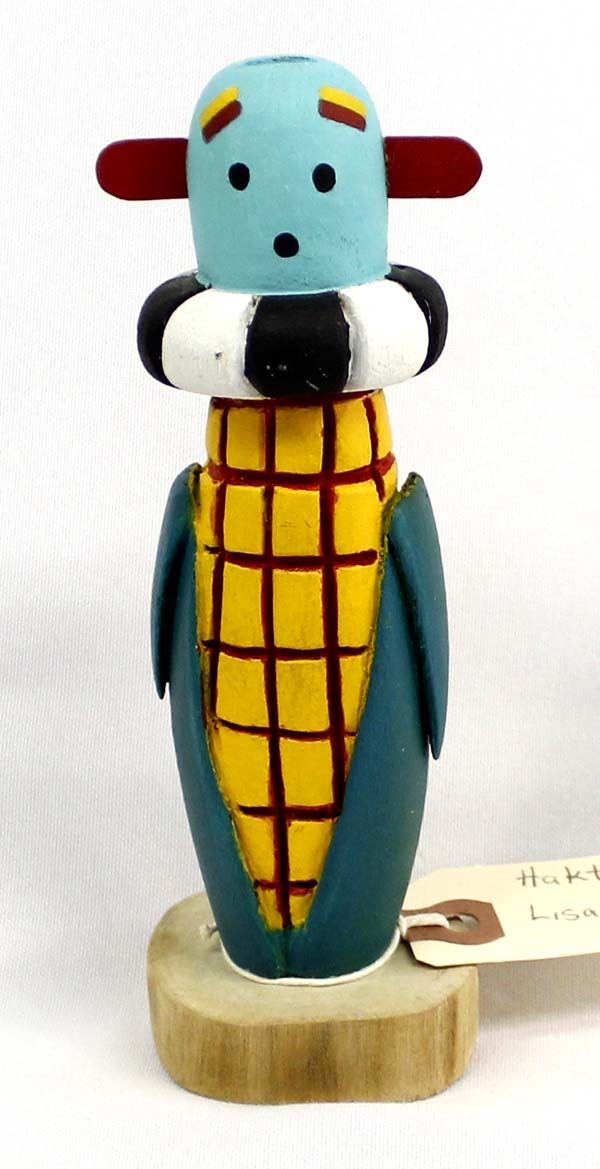 Native American Hopi Hakto Kachina by Lisa Coochwytewa, measures 6.5'' x 2'' x 2'', missing feather topknot, signed on the bottom, 3rd Mesa Kykotsmovi, Arizona