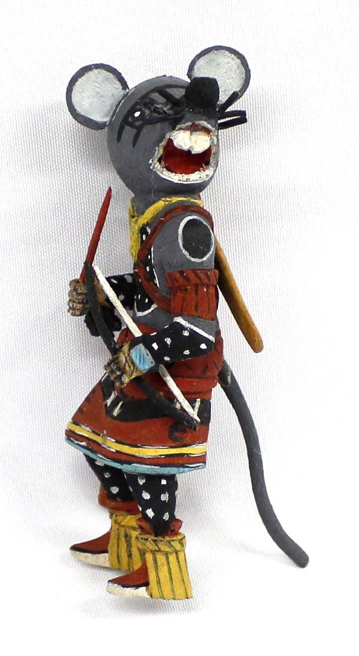 Native American Hopi Mouse Warrior Kachina, measures 5.5'', tail, arrow, and ear have been glued back on, lots of detail