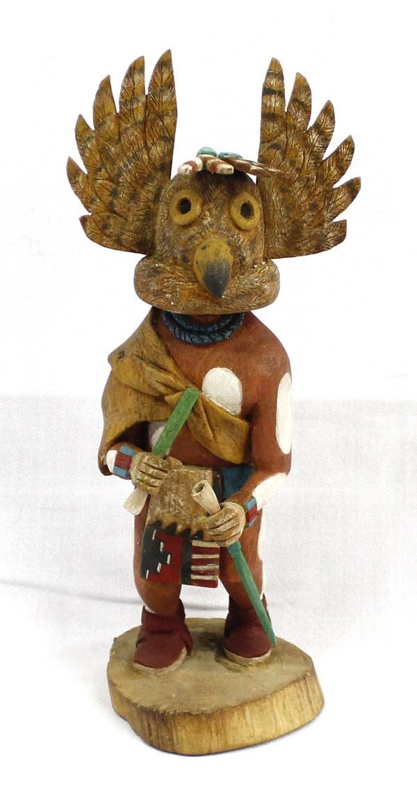 Beautiful Native American Hopi Owl Kachina by Elmer Adams of 1st Mesa, measures 5'' x 15.25'', signed on the bottom, exquisitely hand painted with very intricate details, Truly a work of art!