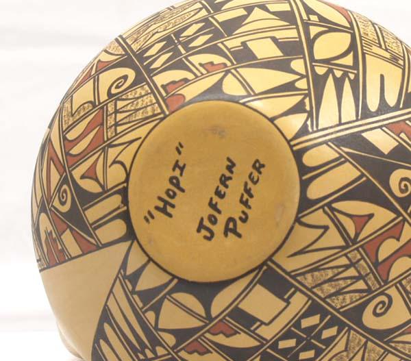 Native American Hopi Pitcher by Joffern Puffer, 9''H x 9''Diameter, Buyers Pay Actual Shipping and Handling Charges(see terms and conditions for more information).