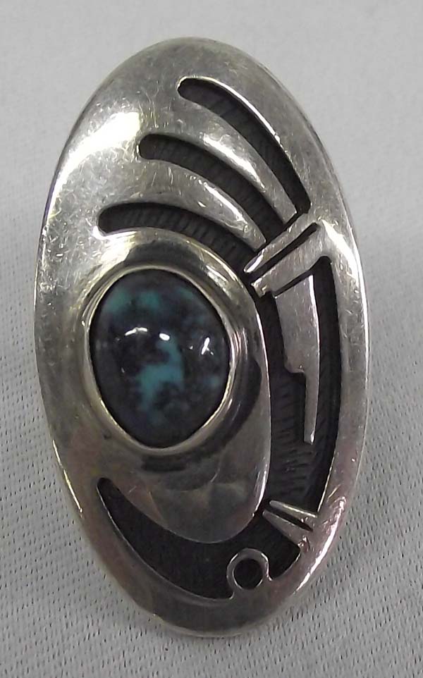 Native American Hopi Ring Hallmark. Ring is size 5 3/4, stone 3/8'' x 3/8'' ring face 1 1 /2''L x 1''W. Bisbee turquoise, overlay. Buyers Pay Actual Shipping and Handling Charges(see terms and conditions for more information).