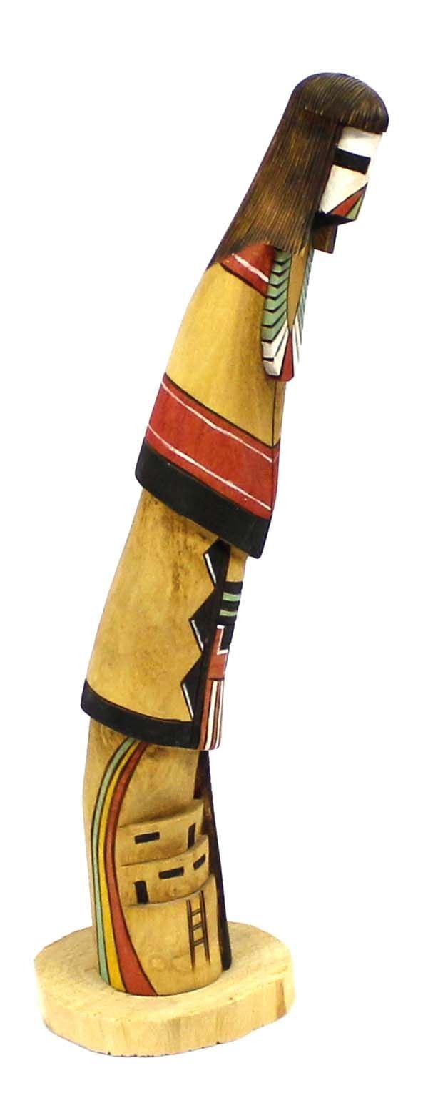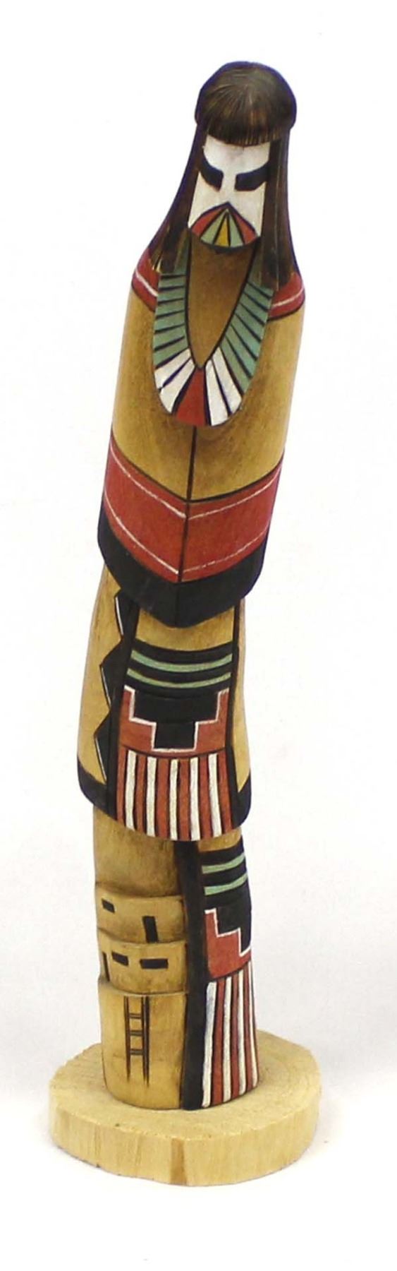 Native American Hopi Shalako Kachina, measures 3.5 x 13 x 3 inches. Marked on bottom W. T.