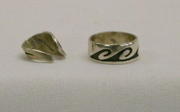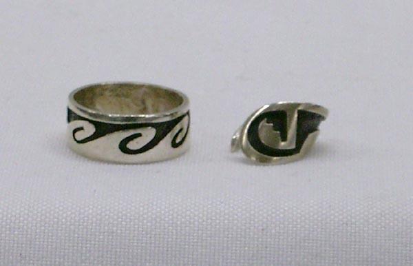Native American Hopi Sterling Silver Ring and Ear Cuff. Ring size 7.25. Ear cuff band 3/8'' at widest point. Hallmarked EH. Buyers Pay Actual Shipping and Handling Charges(see terms and conditions for more information)