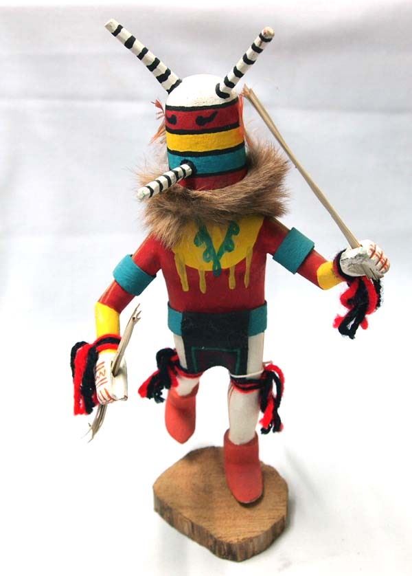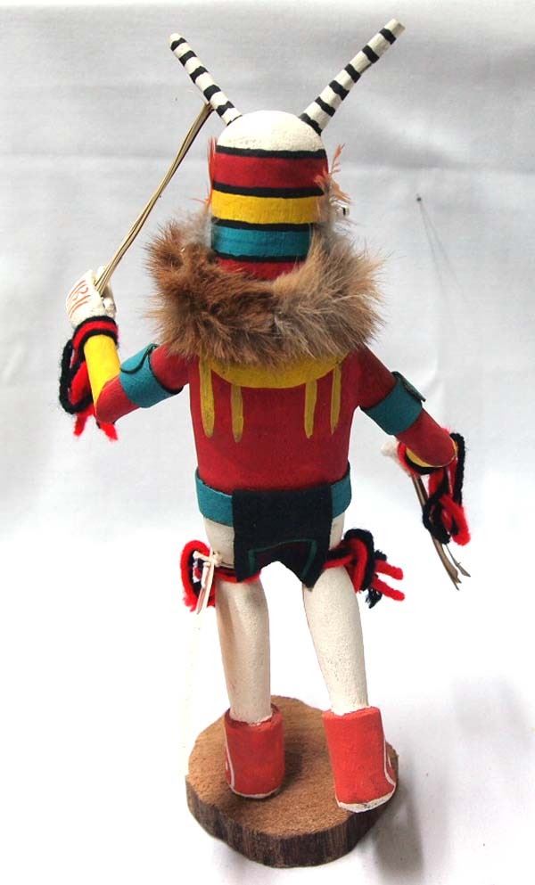 Native American Hopi Wasp Kachina by Ty Duwyenie, measures 4'' x 11'' x 7'' and is signed by the artist, FYI: ''Tyrone (Ty) Duwyenie Hopi Pueblo/Hualapai, Ty started carving katsinas around 1978, he is also a performing artist, singer and musician. Ty lives in Scottsdale, AZ. Ty learned his carving from his father.''