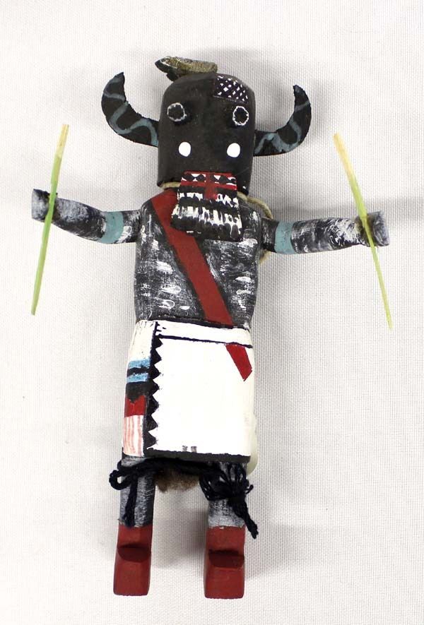 Native American Hopi Whipper ''Pachavu Hu'' Kachina, measures 6'' x 4'' x 2'', missing piece off of the top of his head