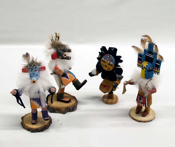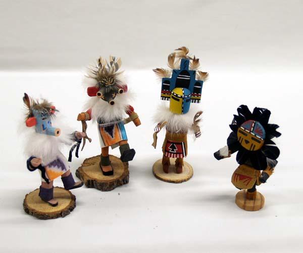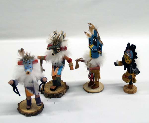 Native American Hopi and Zuni 4 Mini Kachinas. Tallest measures 5'', all are signed however signatures are hard to read. Buyers Pay Actual Shipping and Handling Charges(see terms and conditions for more information).