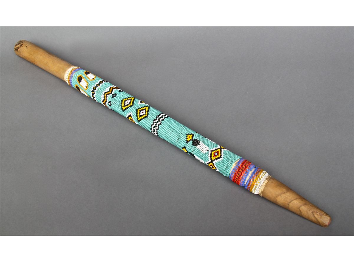 Native American Indian Antique, Beaded Peace Pipe, hand polished. [Height/Length (in)= 27, Width (in)=1.5, Depth (in)=1.5, Weight (lbs)=2] With C.O.A. signed by Chief Joe Dan Osceola & Seminole Tribe. Go to: www.pangaea-auctions.com for more information about this collection.