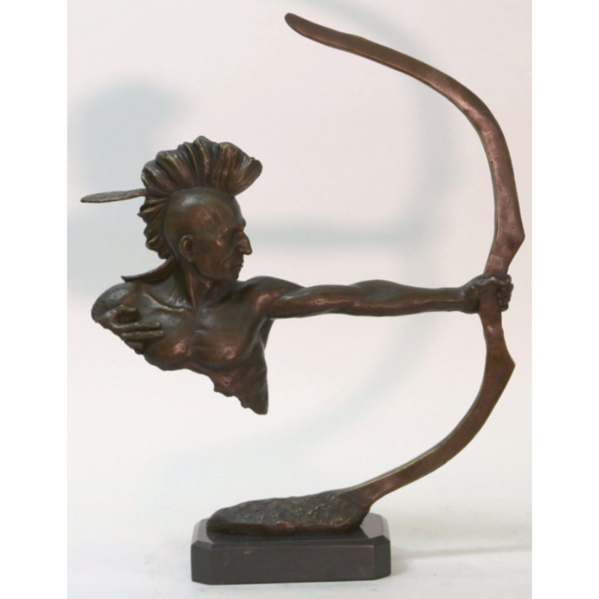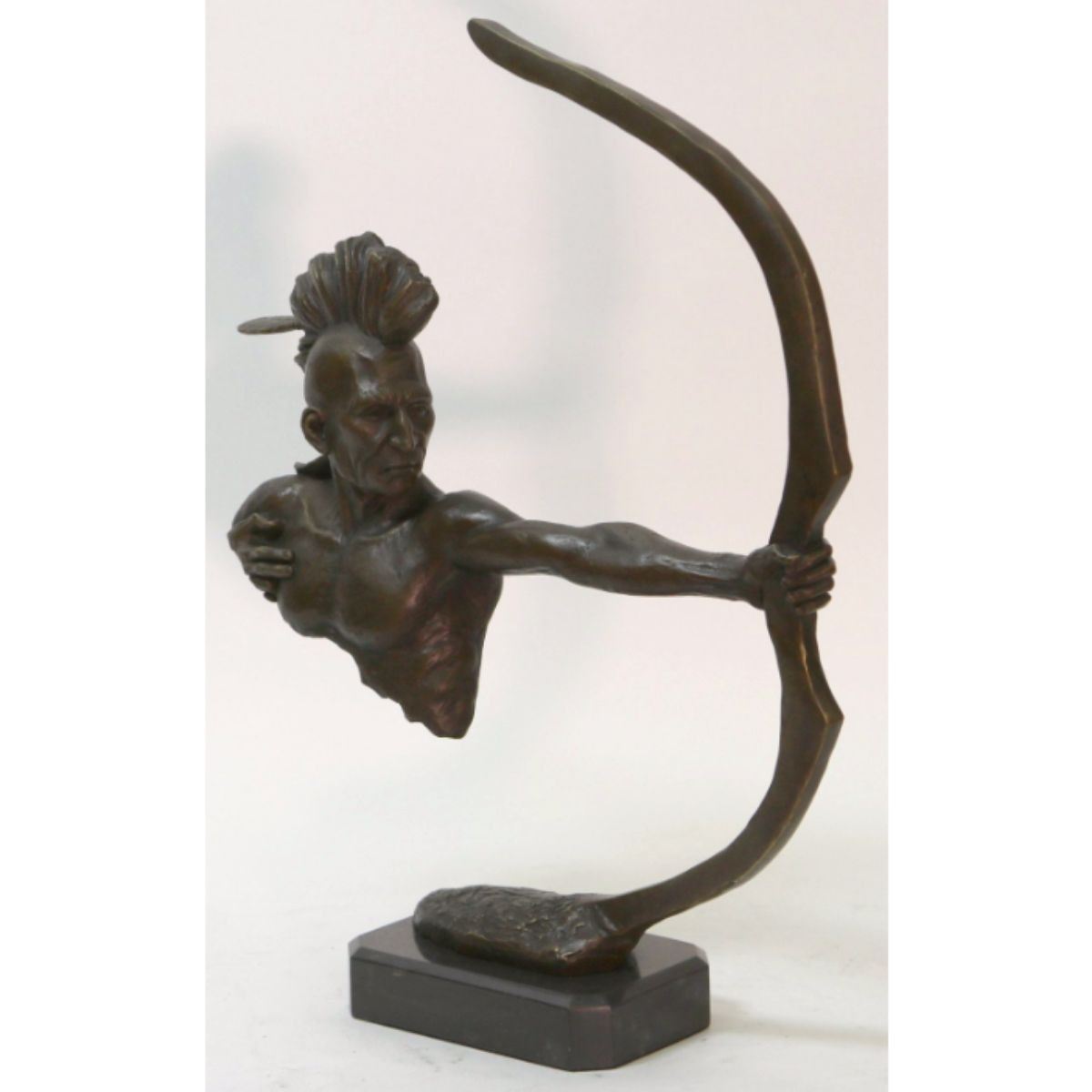 Native American Indian Archer modern style sculpture. Lost wax casting bronze, with brown patina, mounted on marble base17" H X 13" W.