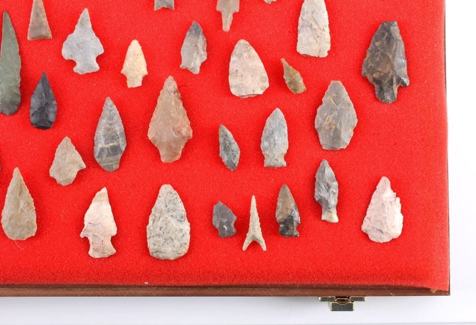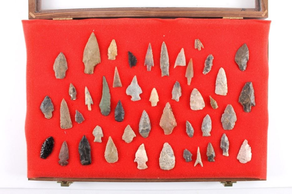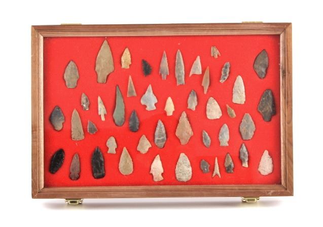This is a collection of authentic Native American Indian arrowhead artifacts. The arrowheads were collected in Montana, Wyoming, Idaho and the Dakotas. These are part of a large Idaho collection. The arrowheads come in a solid wood and glass display case. The case measures 12" x 18".