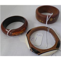 120 - Three Wood Carved Bangle BraceletsHelm Auction, Inc.