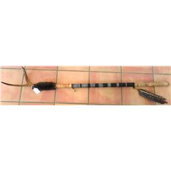 This 20th century plains speaker staff measures 58 x 7 inches and is made from antler, wood, fur and beads. Condition: Good. Shipping $45.00