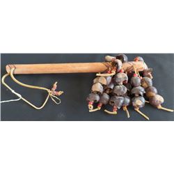 1930's Indian Dance Rattle made from wood, leather, nut and shells. The item measures 15 x 7 inches. This item is Pueblo, New Mexico. Conditio...