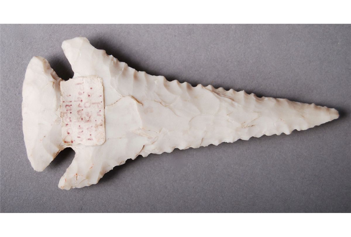 Native American Indian Artifact, Dovetail Arrowhead [Height/Length (in)= 2.75, Width (in)=1.5, Depth (in)=0.25, Weight (lbs)=0.25] With C.O.A. signed by Chief Joe Dan Osceola & Seminole Tribe. Go to: www.pangaea-auctions.com for more information about this collection.